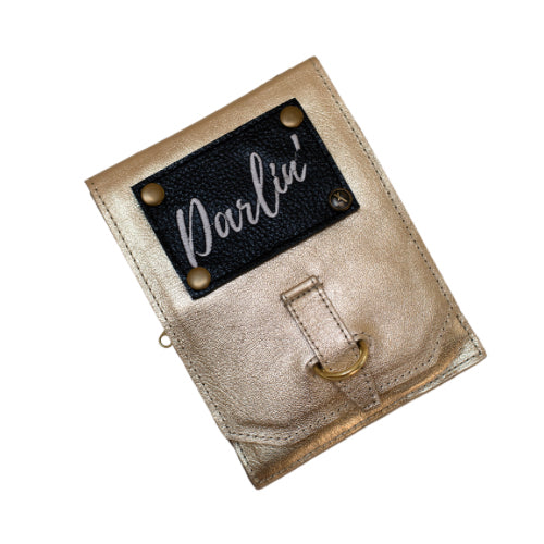 It has been designed and redesigned, and now we feel we have made the perfect stand-alone cell phone purse available. It has an exterior cell phone pocket, with an interior full-length pocket, a zipper pocket, and places for ID and cards, all under our patent-pending, super simple and secure D-ring closure.