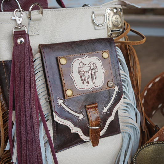 It has been designed and redesigned, and now we feel we have made the perfect stand-alone cell phone purse available. It has an exterior cell phone pocket, with an interior full-length pocket, a zipper pocket, and places for ID and cards, all under our patent-pending, super simple and secure D-ring closure.