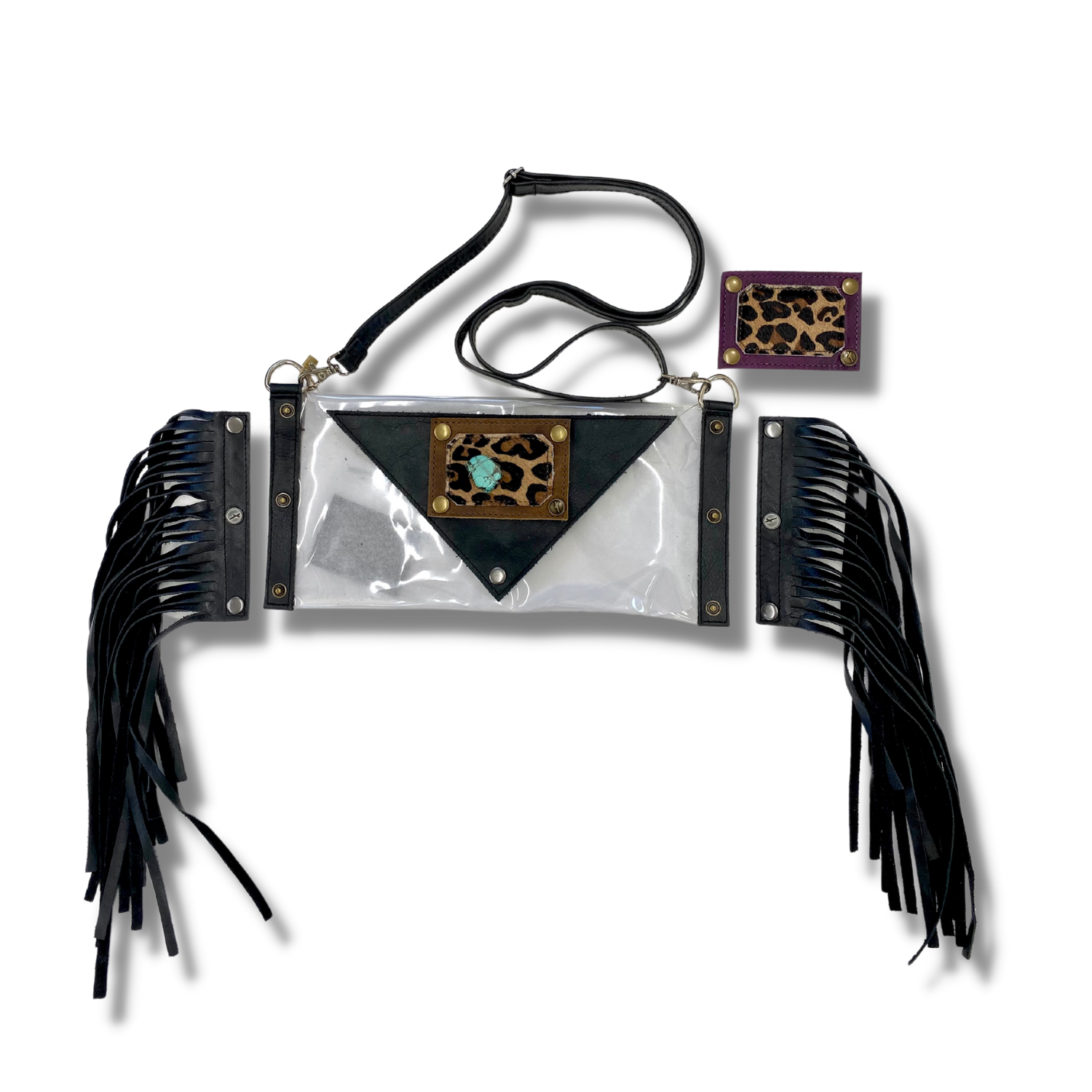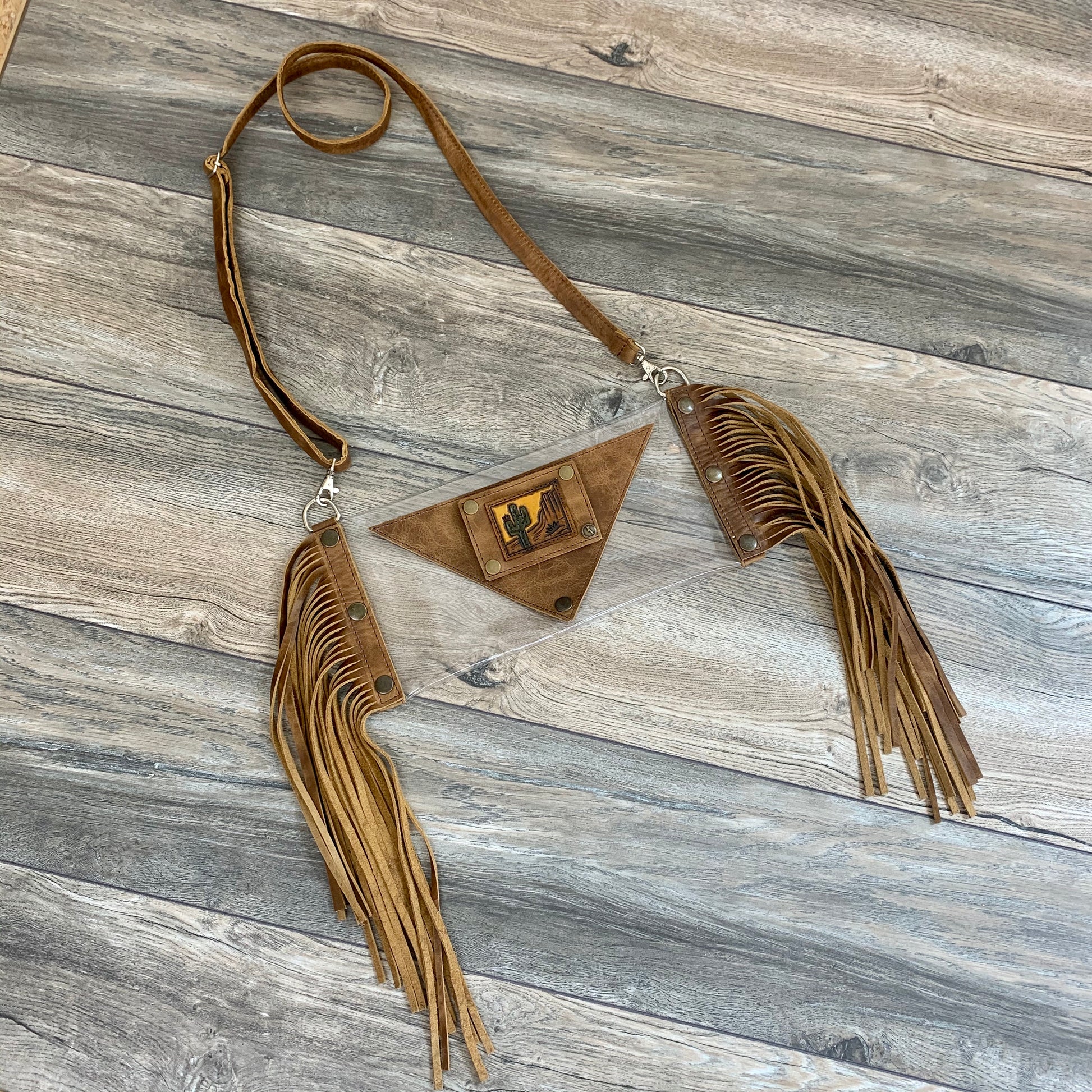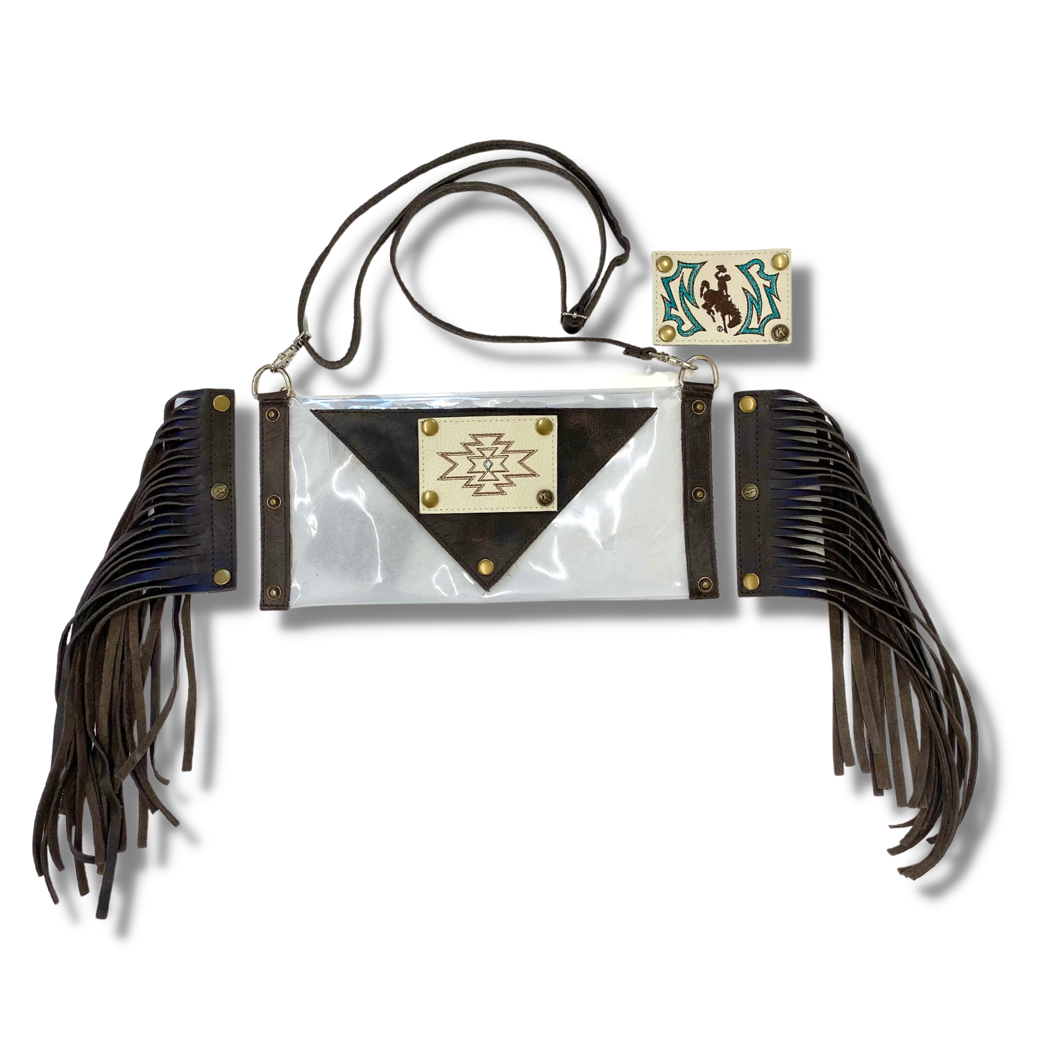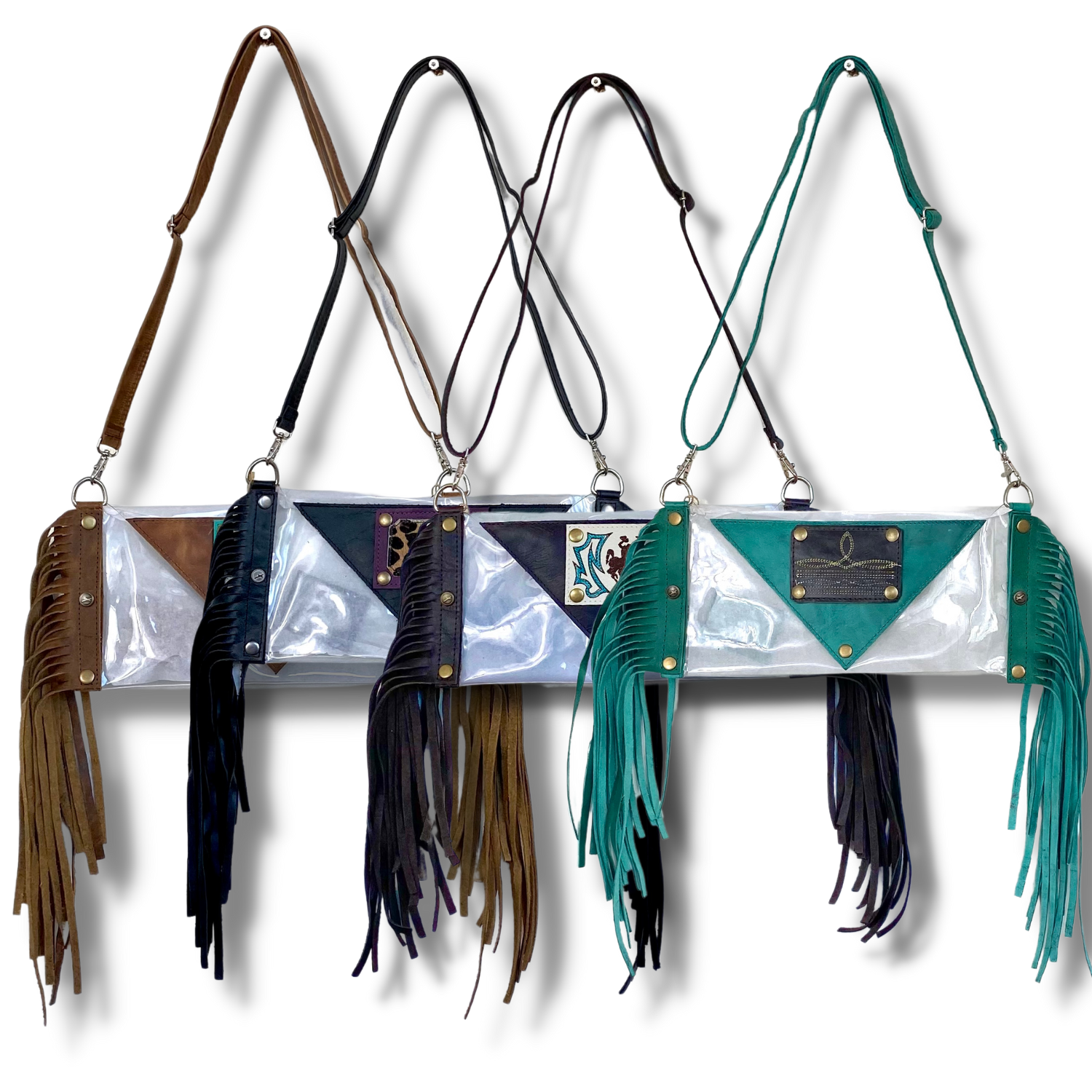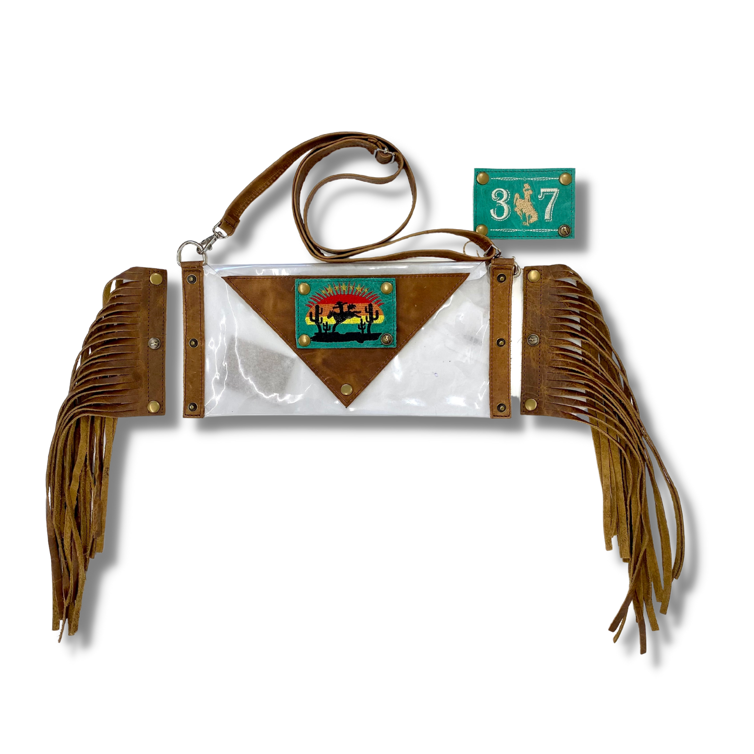 Finally! A cute clear handbag that you can take into all the concerts, rodeos & events. Our clear bag features a removable and adjustable strap and removable fringe. Plus this handbag works with any of our patches, so you can create your own unique look! More pictures to come!