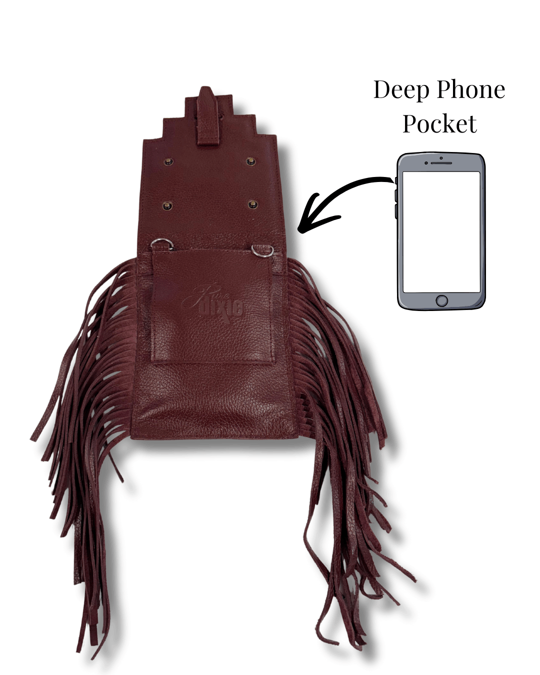 Now in the fan-favorite wine color! The fringe makes this one fun and completely practical for all occasions. This mini is made for removable patches, patches sold separately!