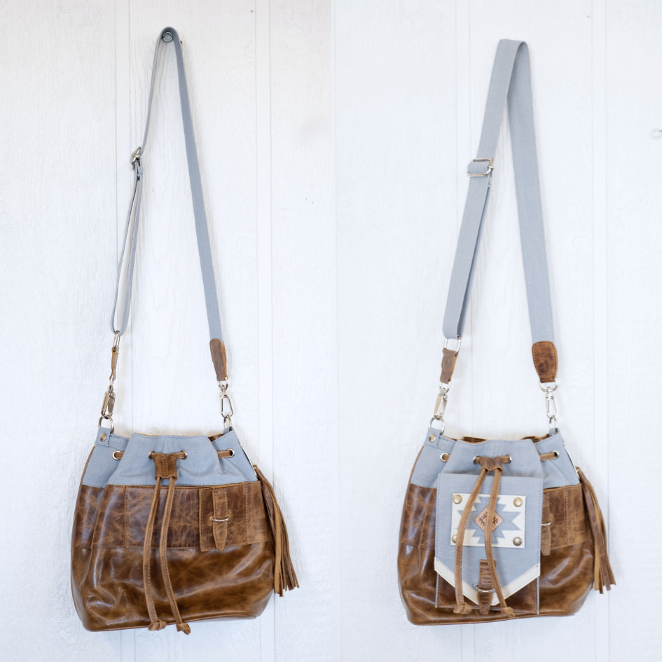 The Bucket Jean bag is the perfect everyday carry! Featuring a pull string at the top and a concealed carry compartment on the back. Attach a belt as a strap and this bag sits perfectly at your hip.
