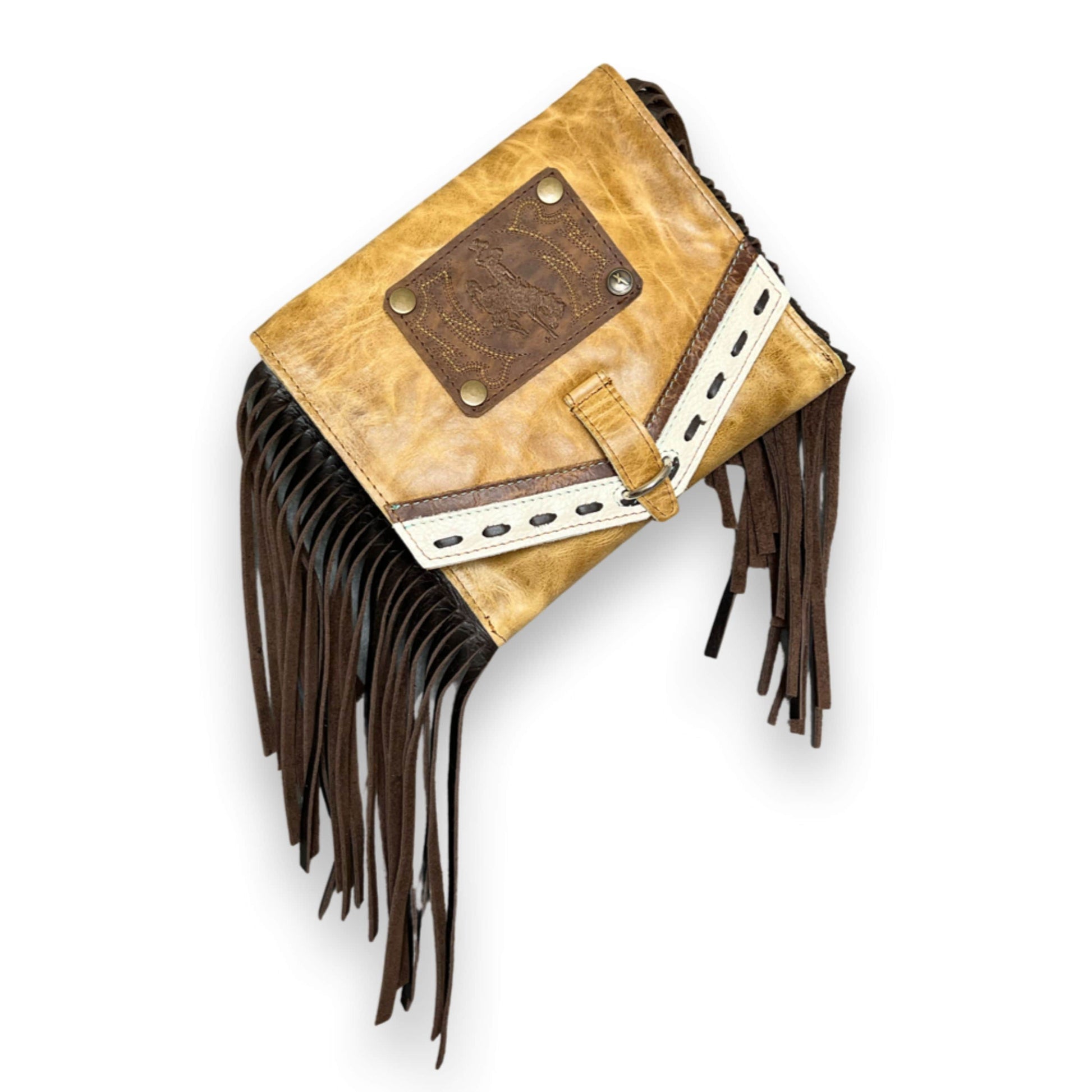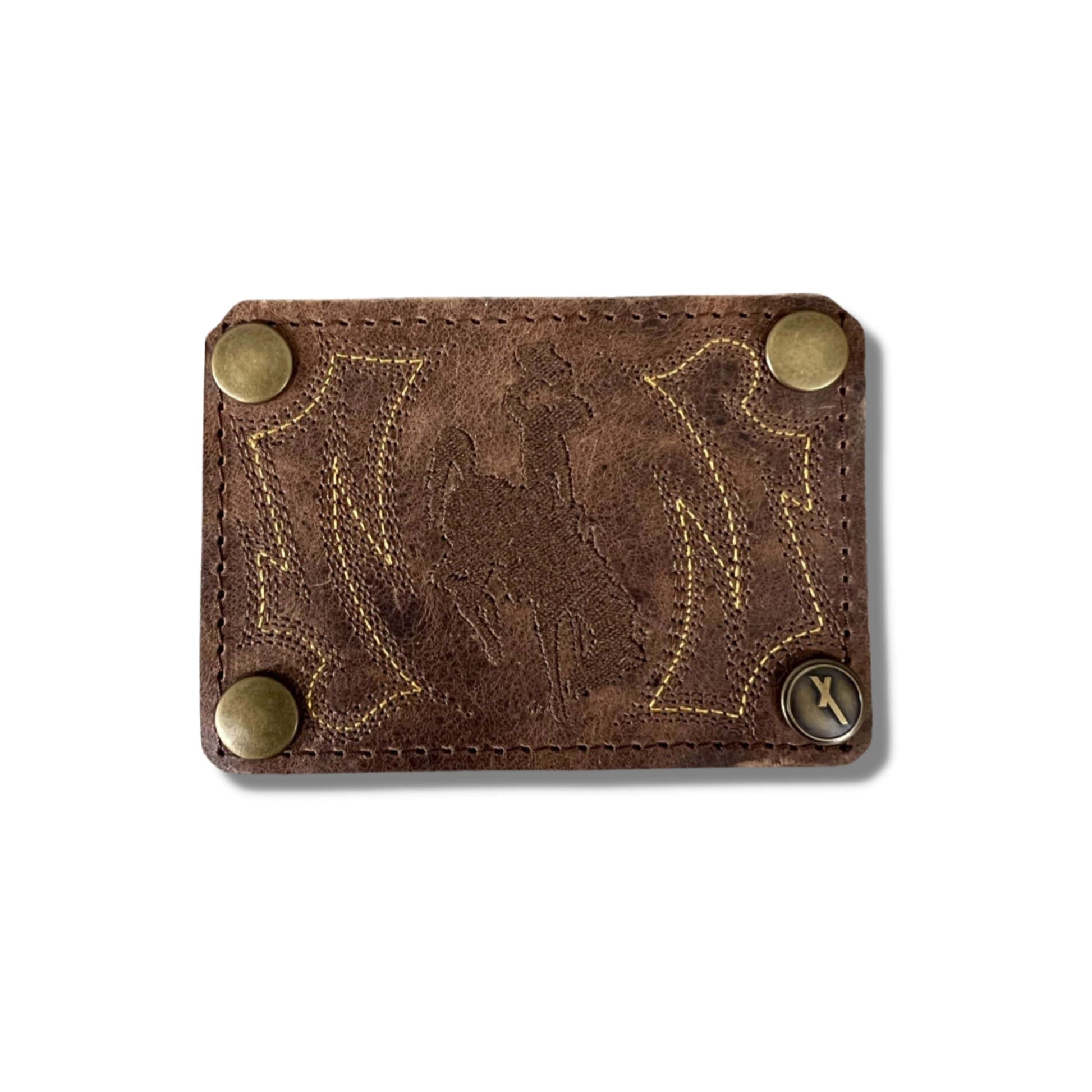 Another take on our ever popular cowboy bucking horse patch. This one is a little more subtle, tone on tone brown stitching with brown and tan boot top stitches. The color of the bucking horse tends to change different angles of light. Looks great on anything!