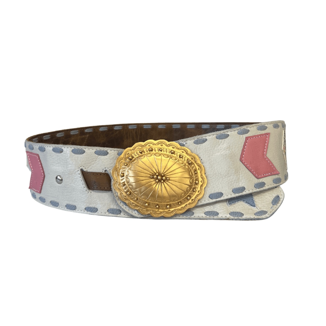 This beautiful gold concho buckle can spruce up any belt! All are handmade!