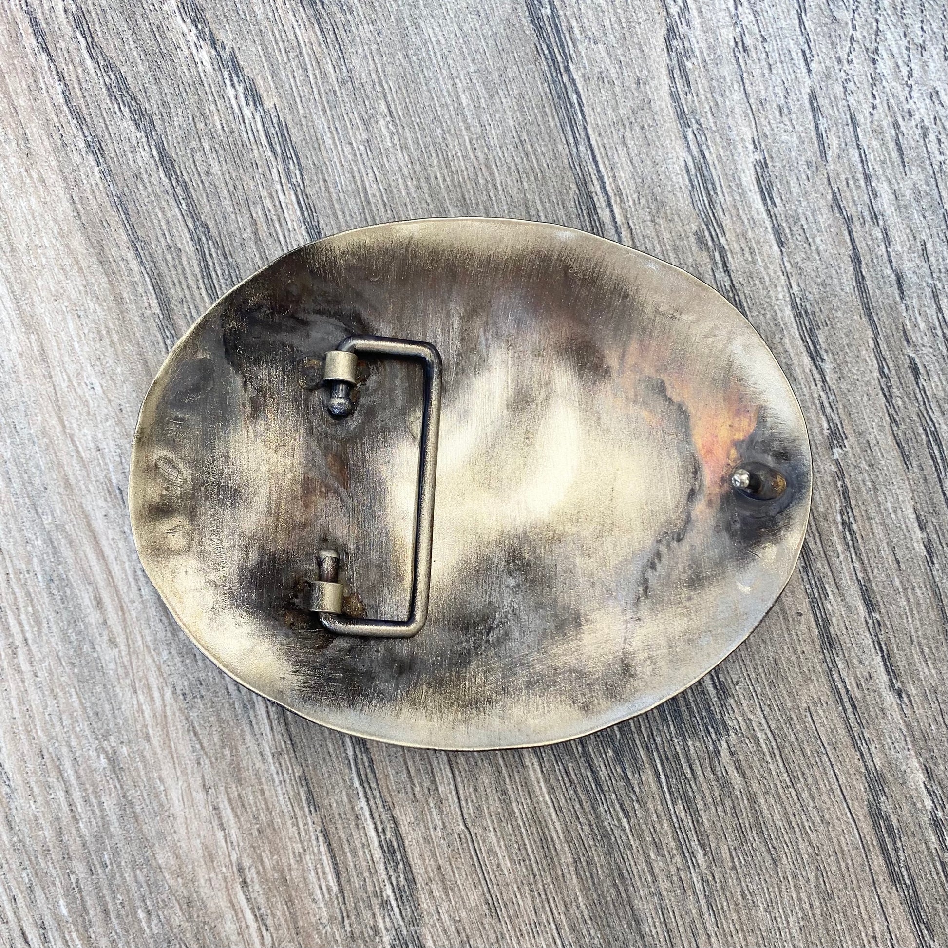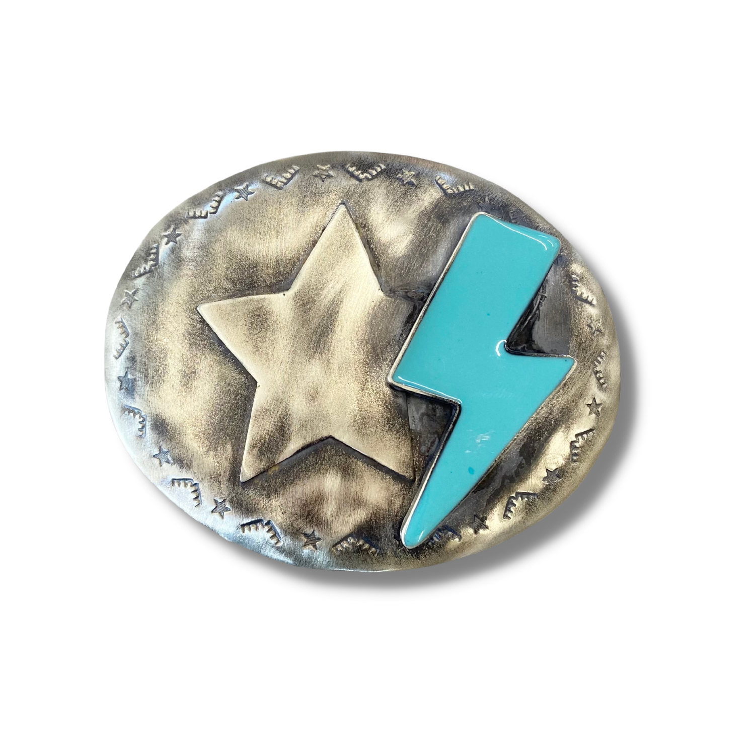 - Oval Lightning buckle: 4" W x 3.75" T