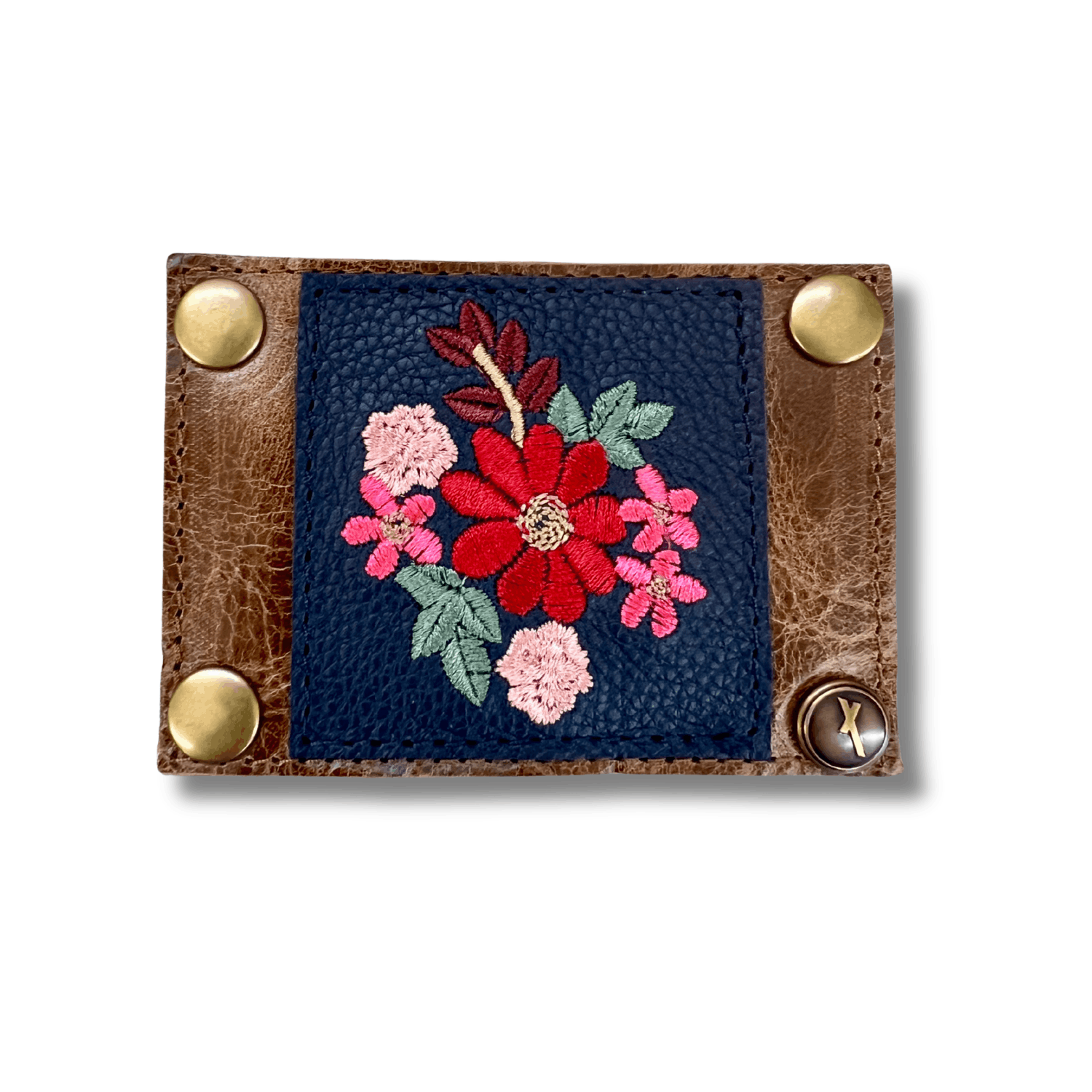 The Gertie Patch is the perfect patch to make your look pop! With a fun combination of tan and navy leather and gorgeous bright floral stitching the Gertie is a timeless and fun way to tie together any look!