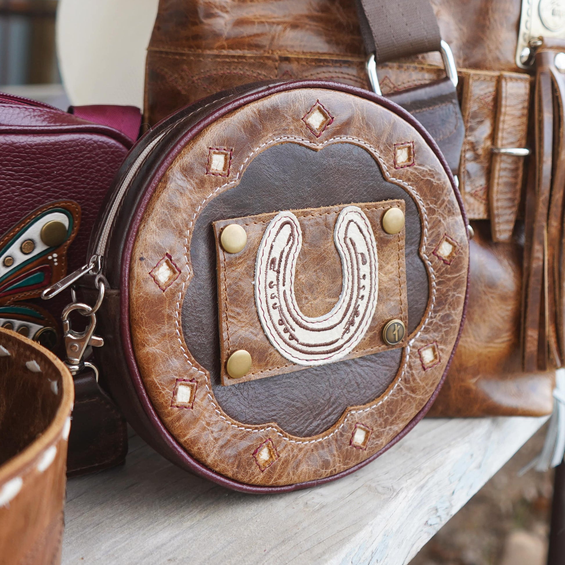 Add a bold streak of fortune with the Horseshoe Patch! Made from rugged distressed leather and featuring a striking ivory horseshoe applique, this patch is designed to complement and elevate any look.