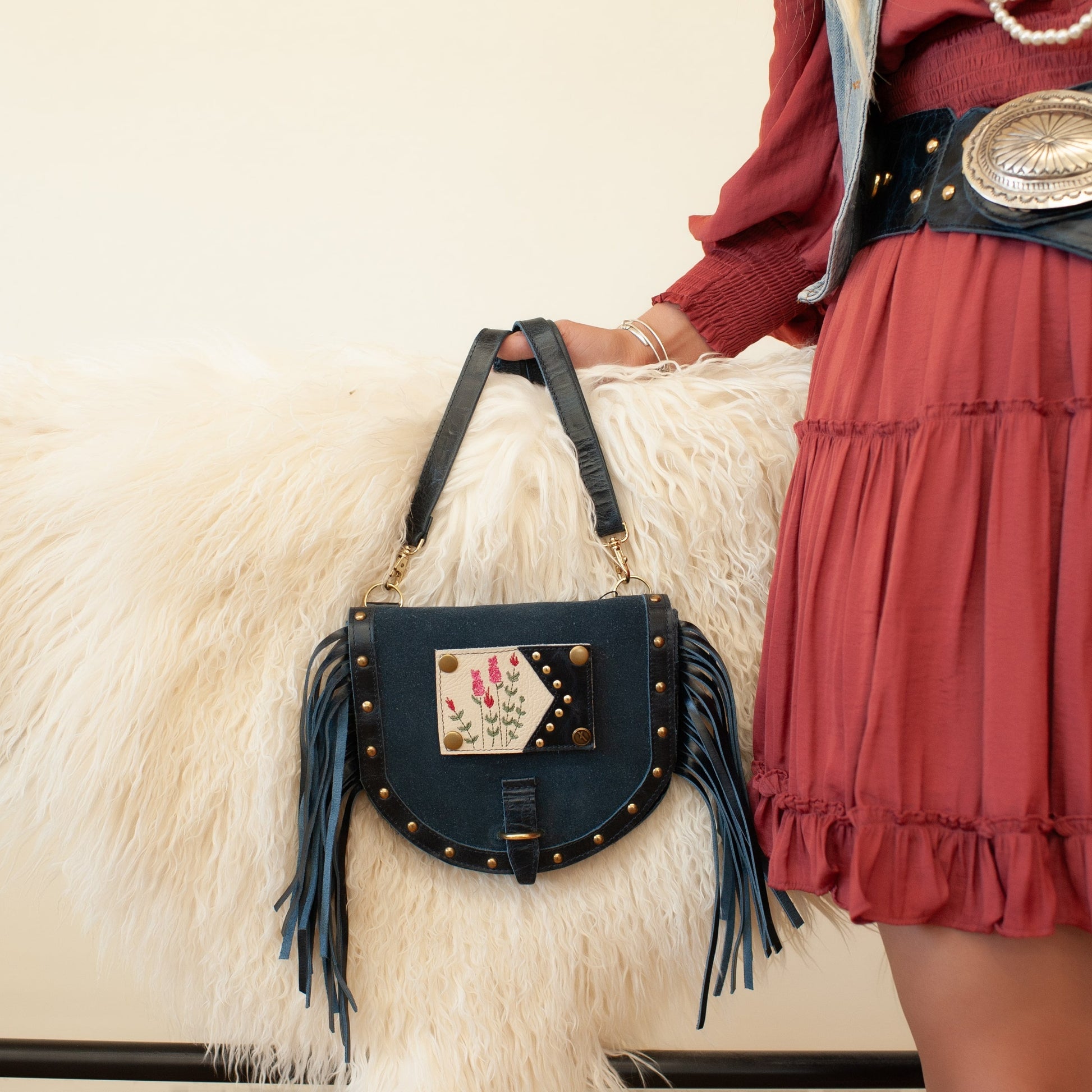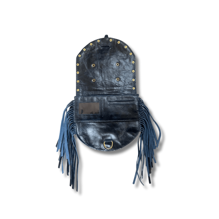 Elevate your everyday style with our JD Heirloom Pouch. It's a chic, versatile accessory that blends timeless design with modern functionality. Crafted with a rich navy suede and accented with elegant gold studs, this bag offers a fresh, contemporary silhouette with softly rounded edges.