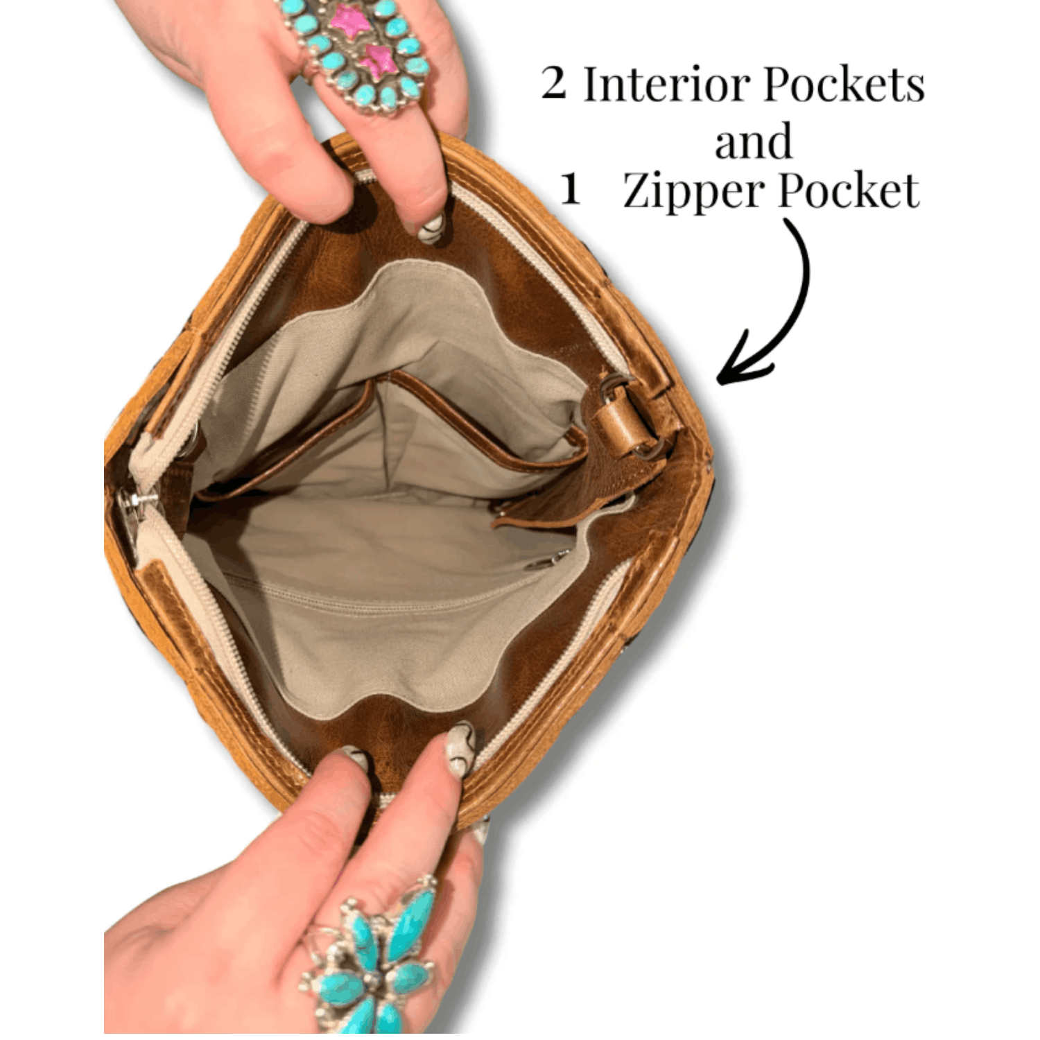 - Any crossbody mini or pouch can attach to the front of the bag, sold separately