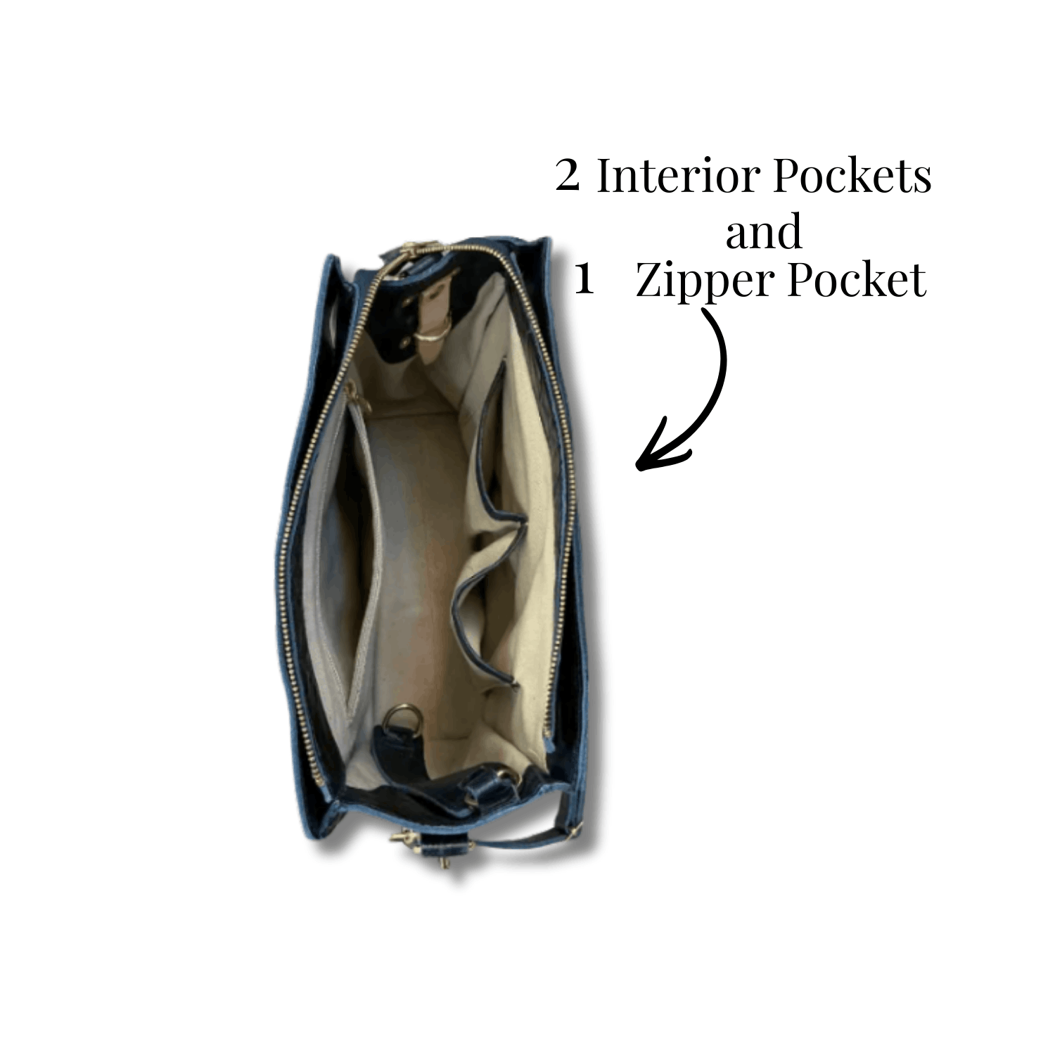 The Lilley Handbag is designed with a striking rich navy leather and is the modern classic piece you will reach for again and again!