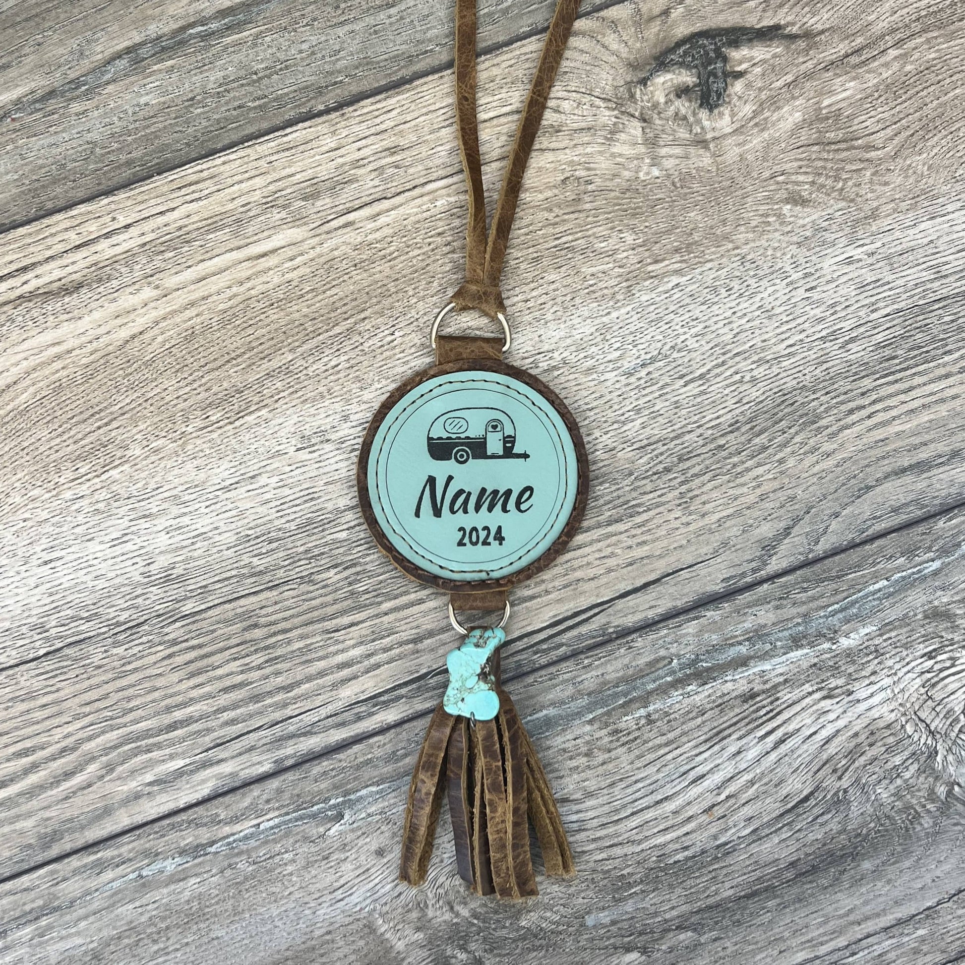 Enjoy wearing this stunning customized name necklace that includes your name and ID number embroidered on high quality leather. The necklace is set off with a beautiful turquoise stone and fun tassel. Sisters~this is the most fashionable name necklace and it's made in Wyoming!