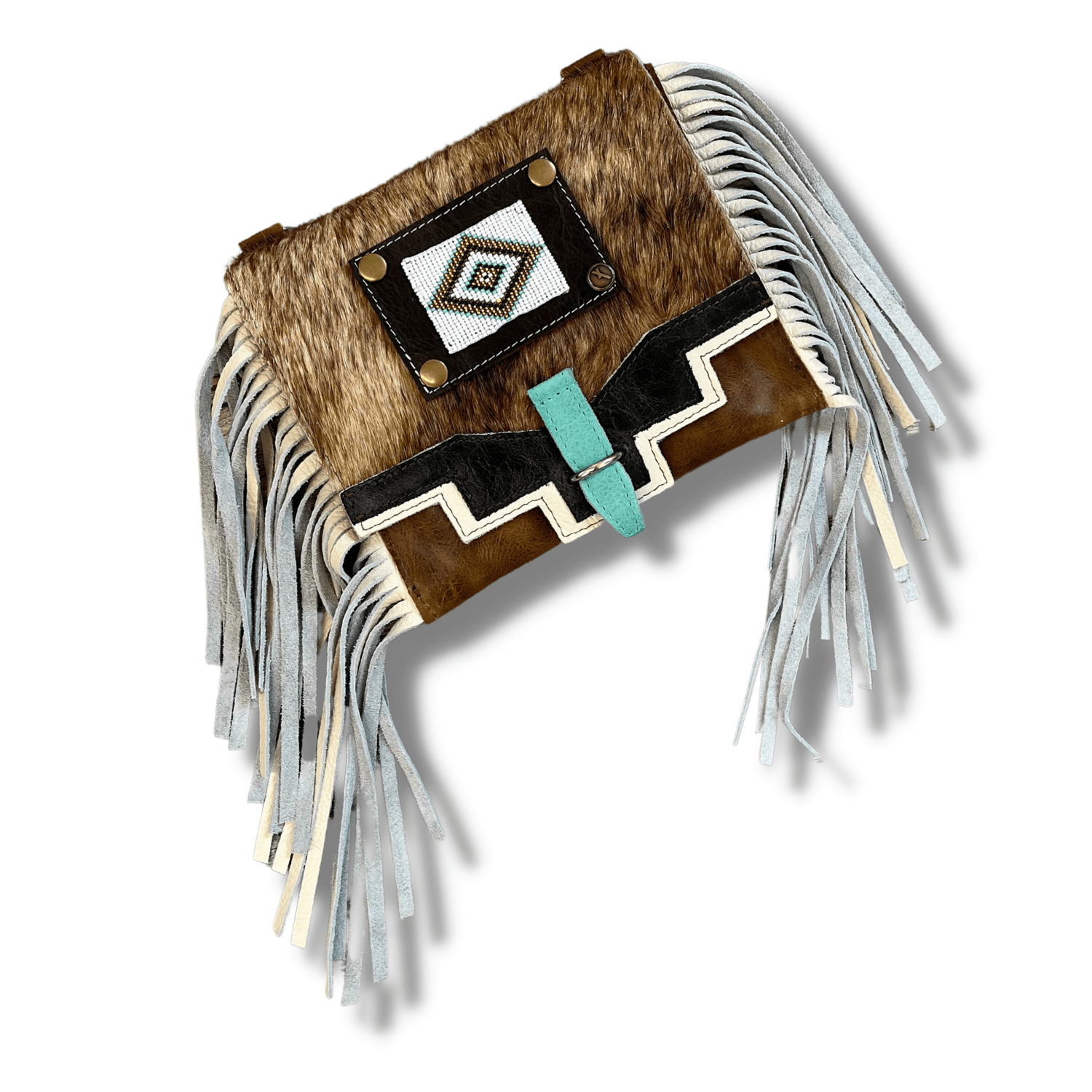Part of the Seed Collection, this gorgeous beaded patch will tie any colors together. The Diamond patch is on brown leather with ivory, gold, mint, and black accents.