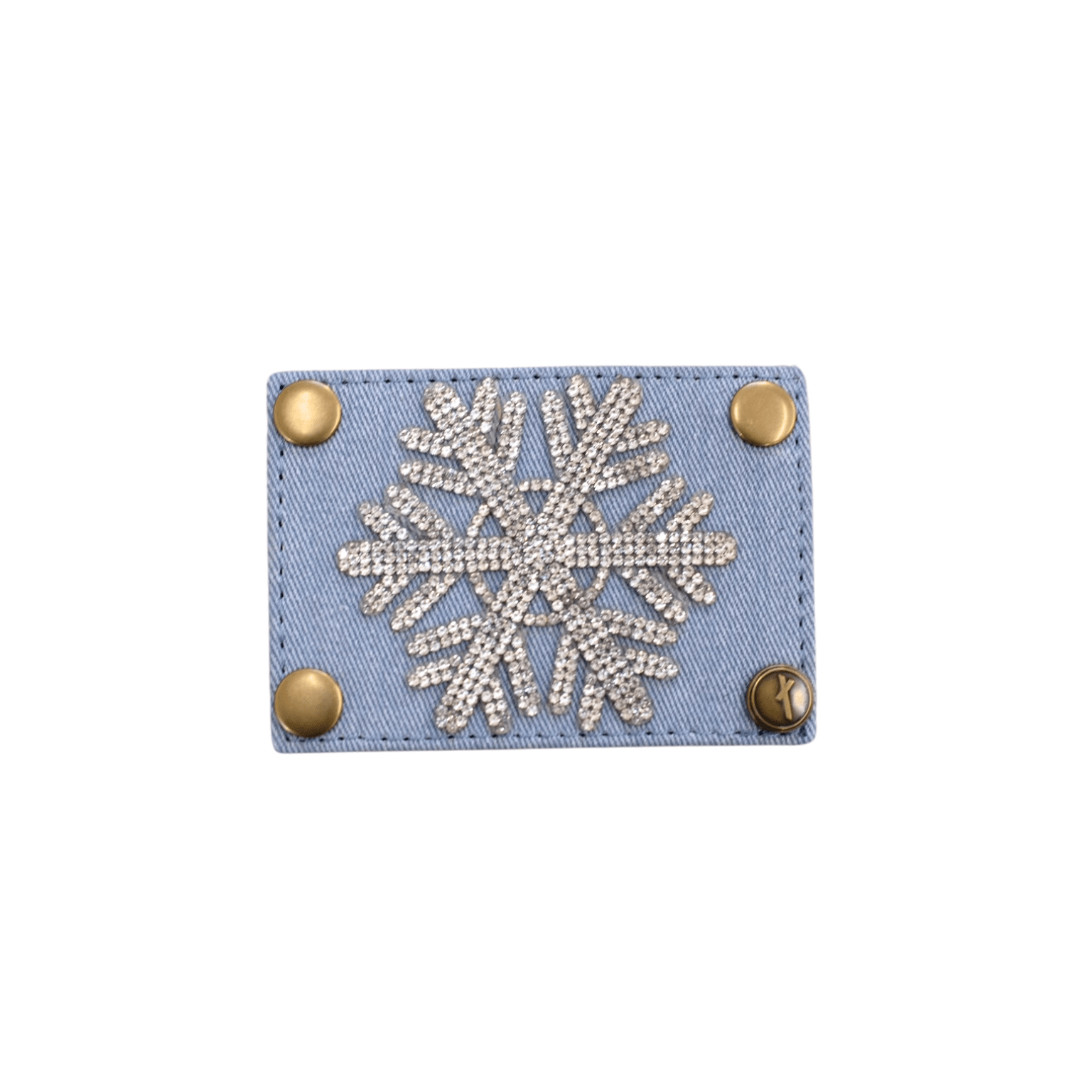 We have a few of these snowflakes left. Grab it before they are all gone!! The snowflake is made out of rhinestones and is attached to a solid denim patch. This patch will work with all crossbody minis and hats!