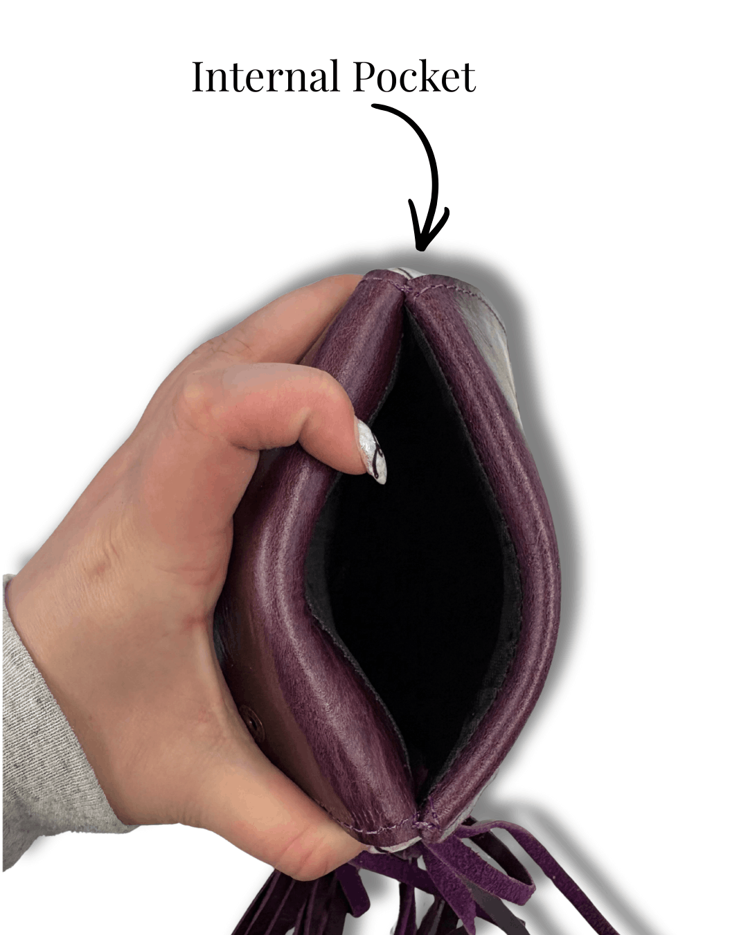 - Interior has place for ID, cards, cash, zipper pocket, and deep full length pocket