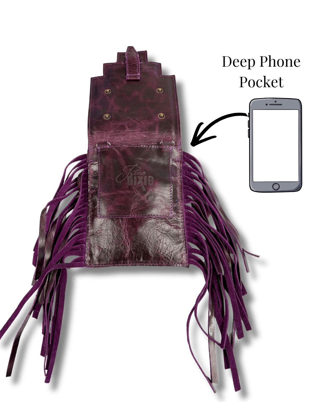 Simple in design with southwest cut front flap. The fringe makes this one fun and completely practical for all occasions.