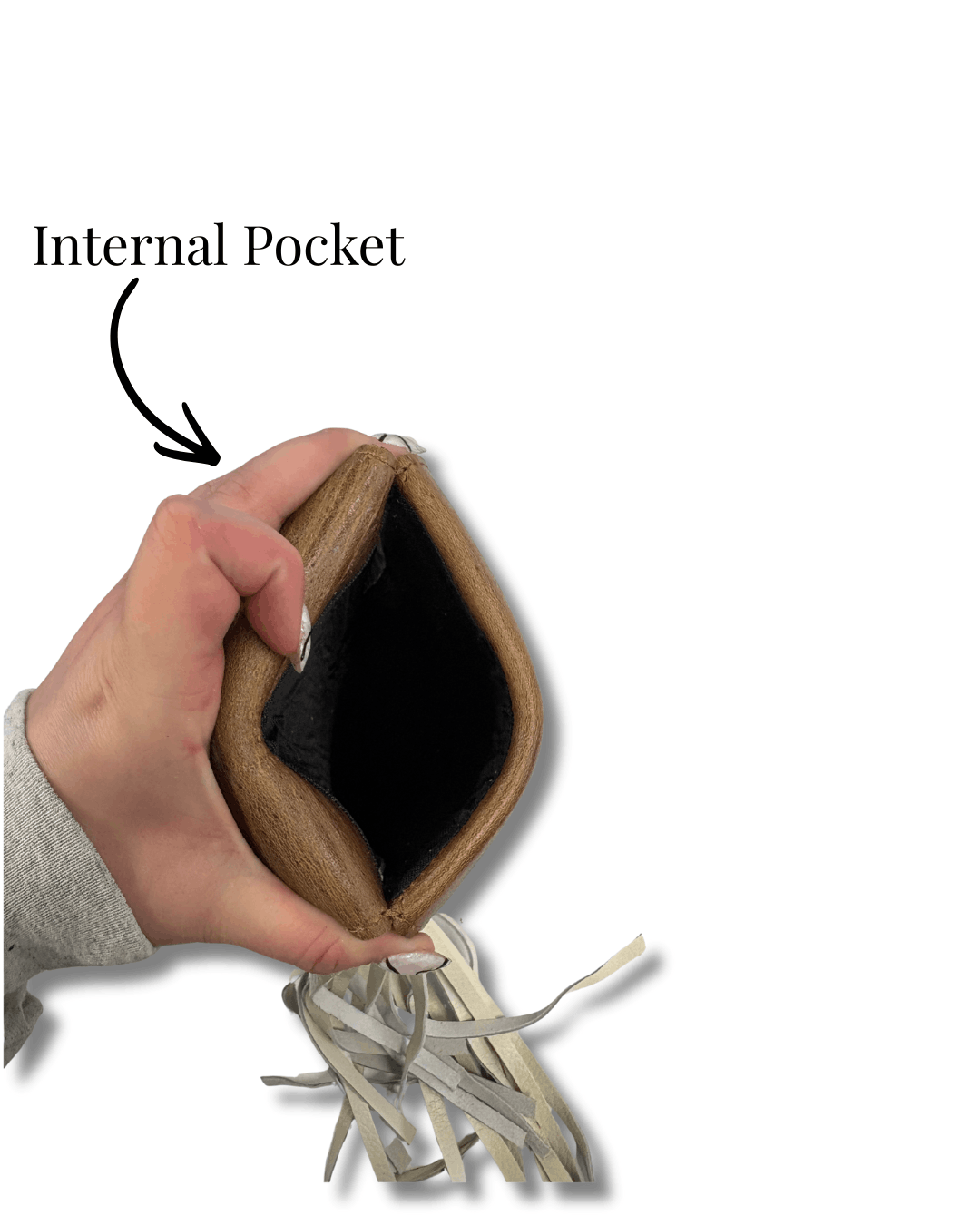 Simple in design with southwest cut front flap. The ivory fringe adds some fun and contrast. The perfect neutral to go with any of our Cactus Collection pieces.