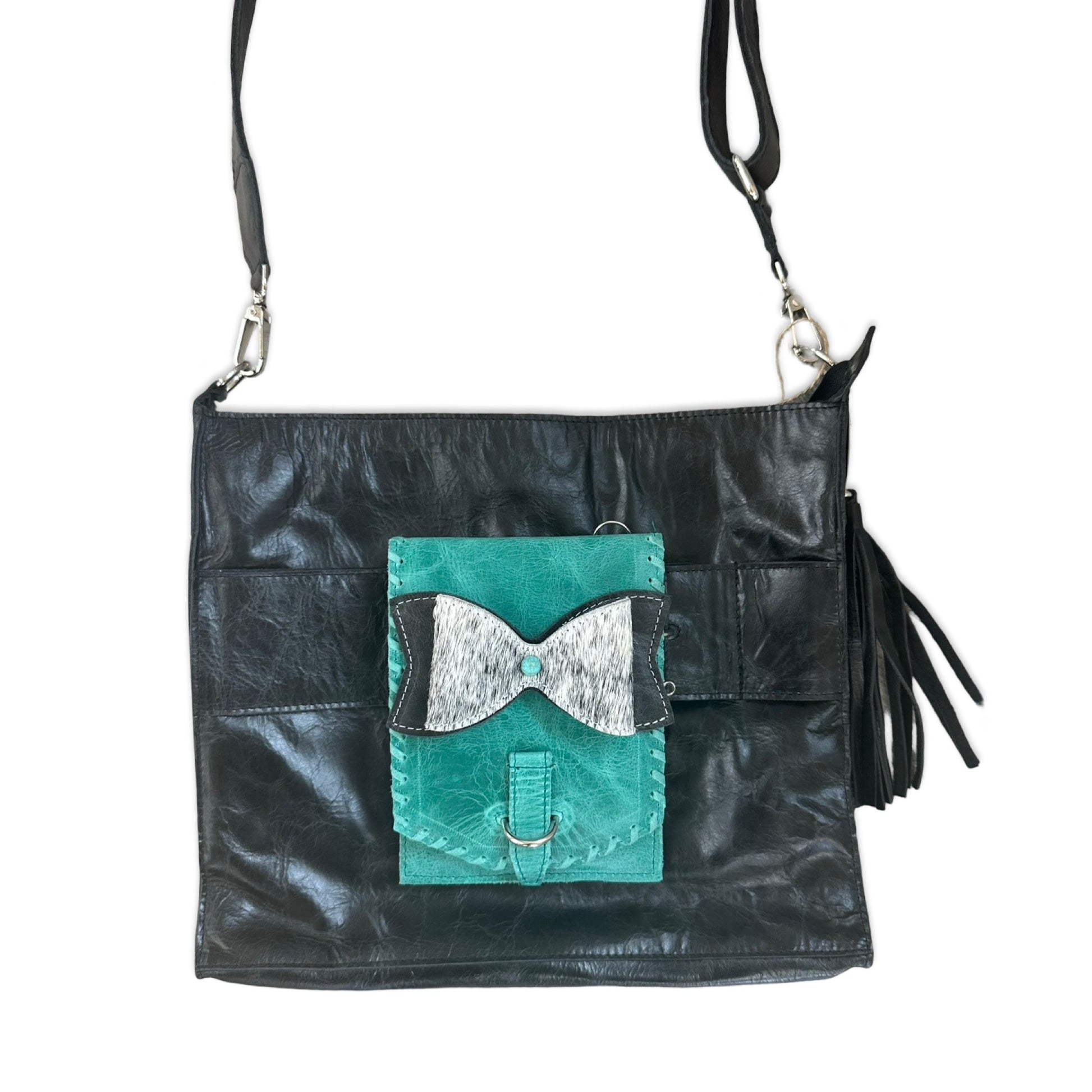 - Any crossbody mini or pouch can attach to the front of the handbag. Sold separately.