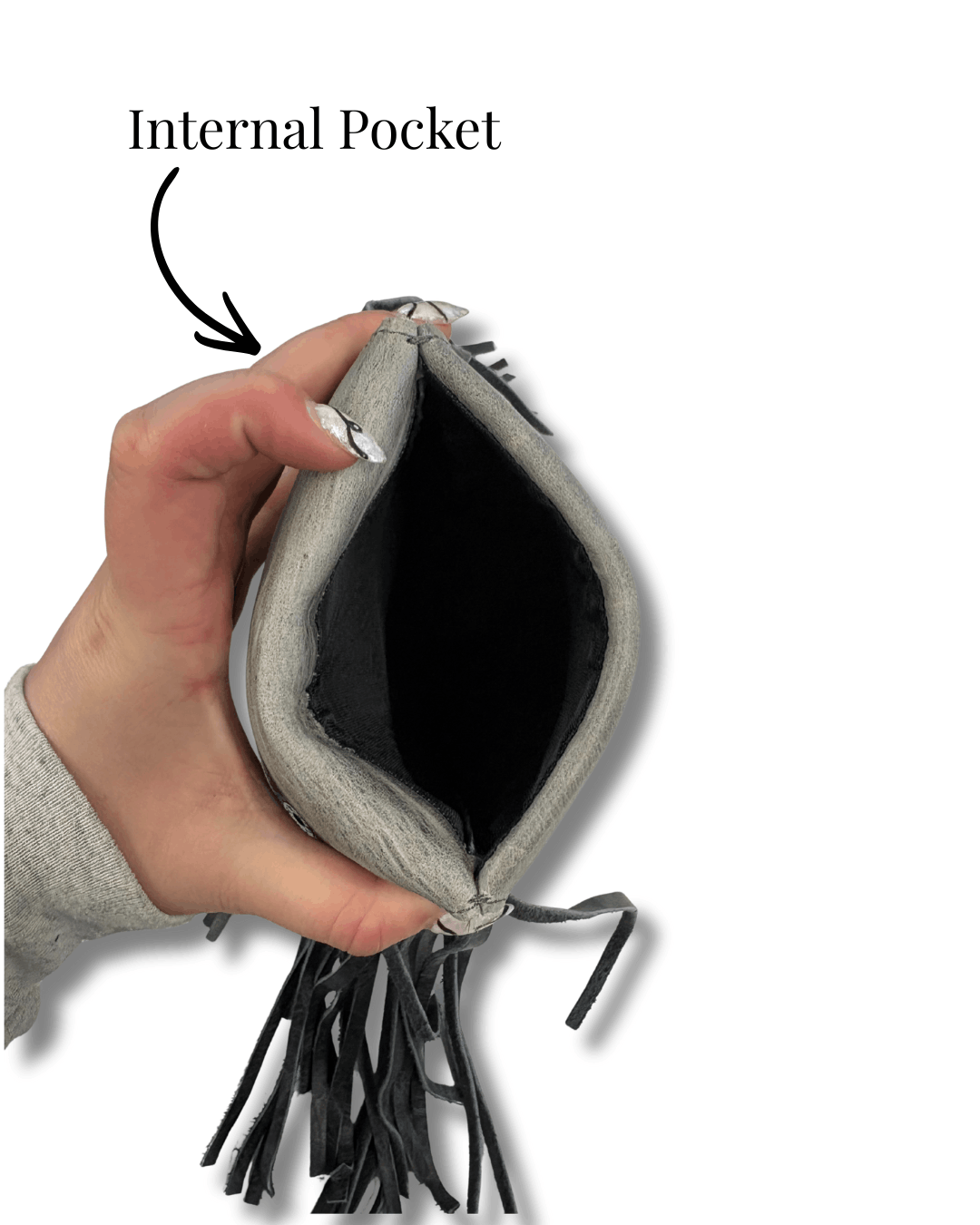 - Interior has place for ID, cards, cash, zipper pocket, and deep full length pocket