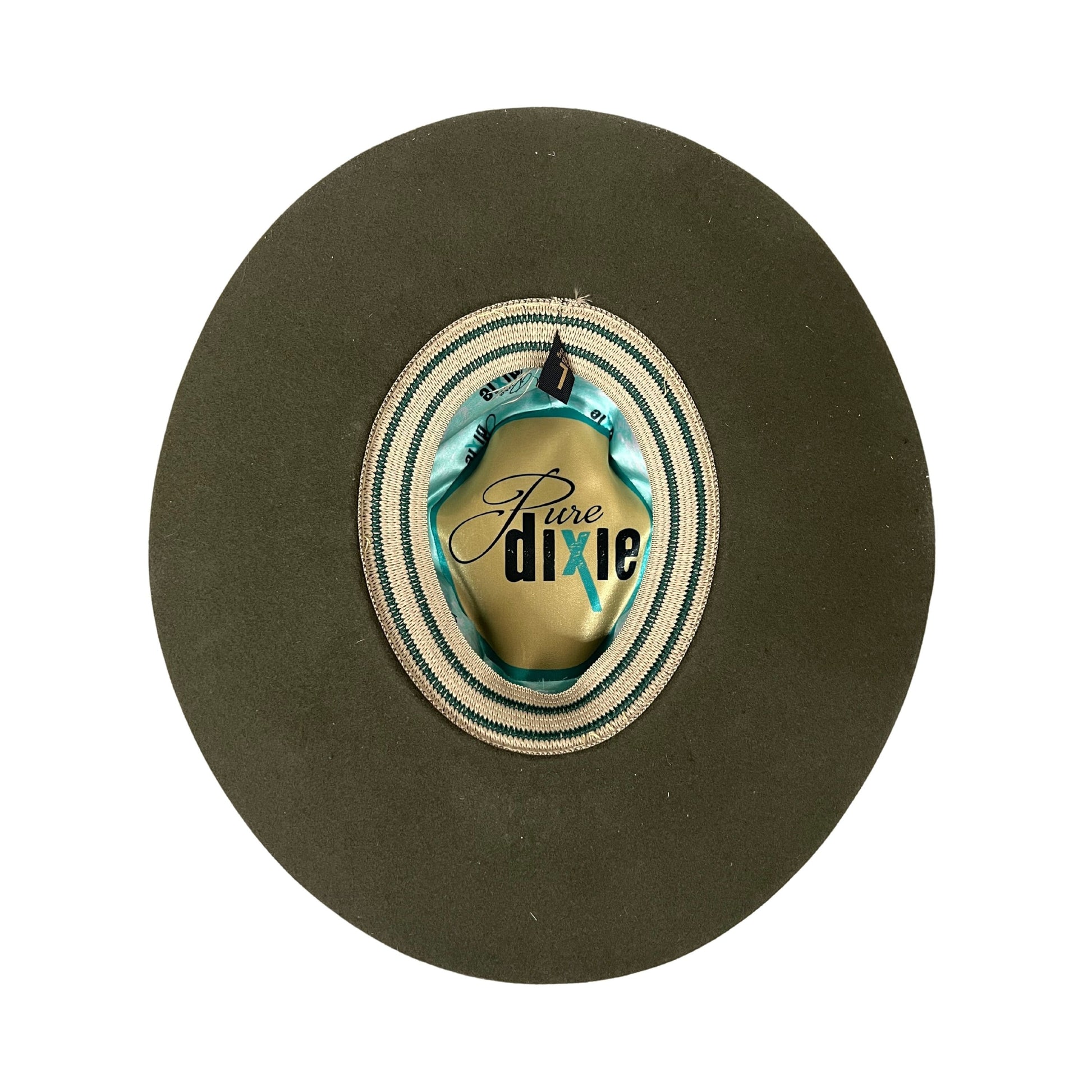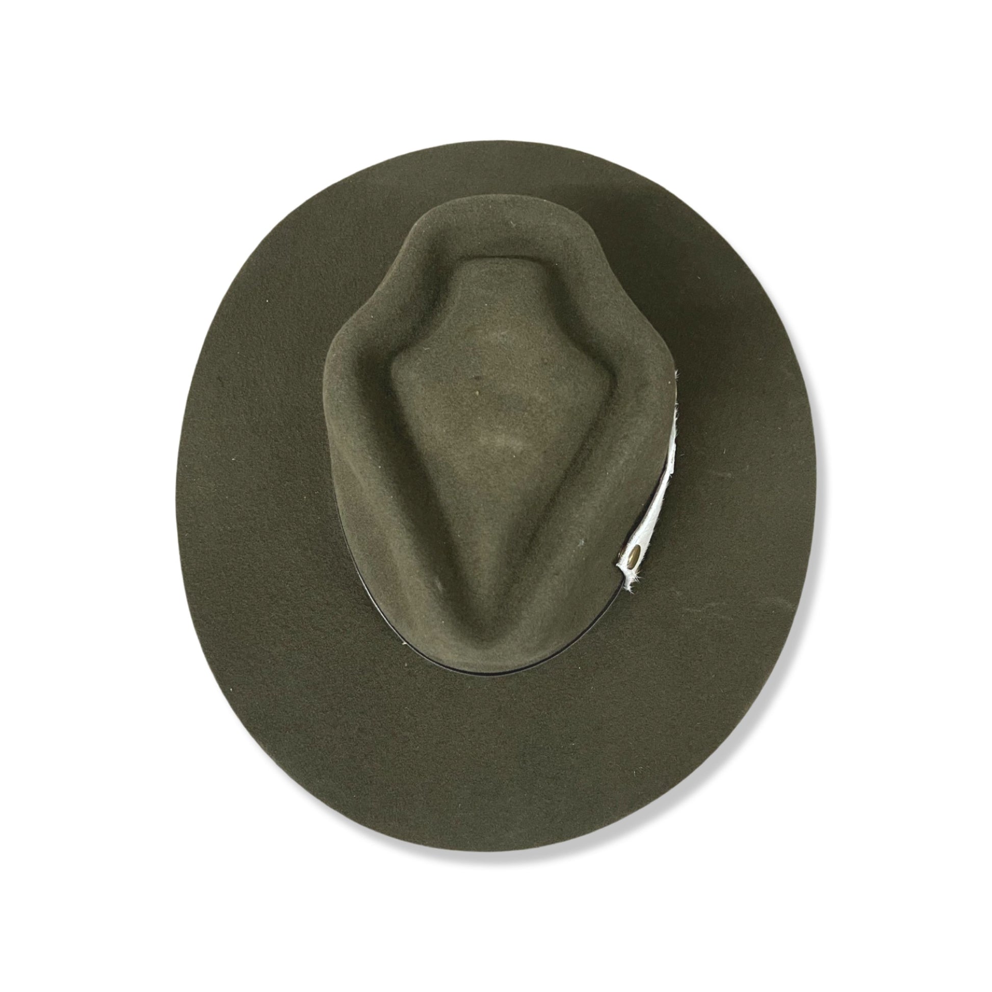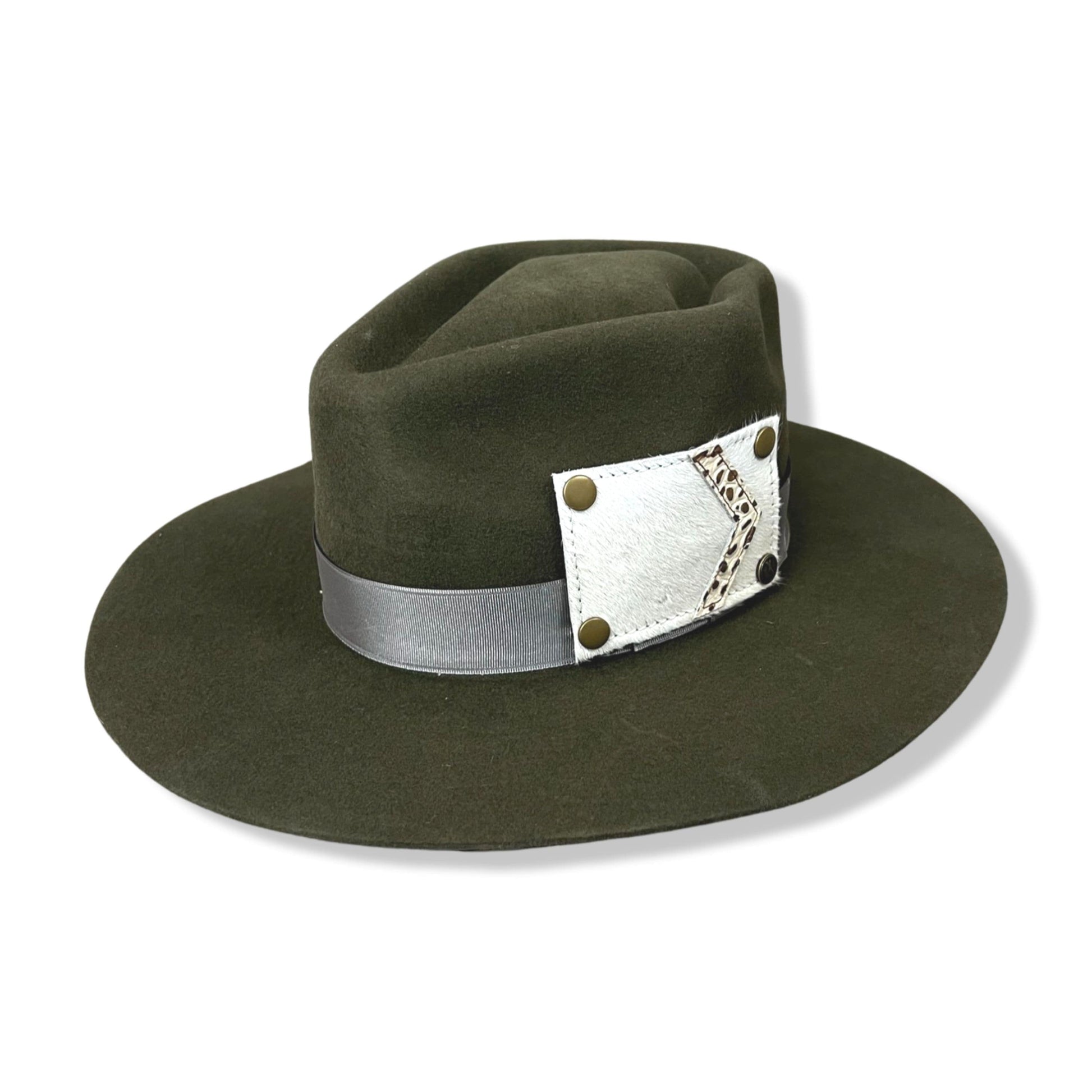 This adorable olive green flat brim felt hat is elegant and stunning! Mix ad match any patch to switch up your look!