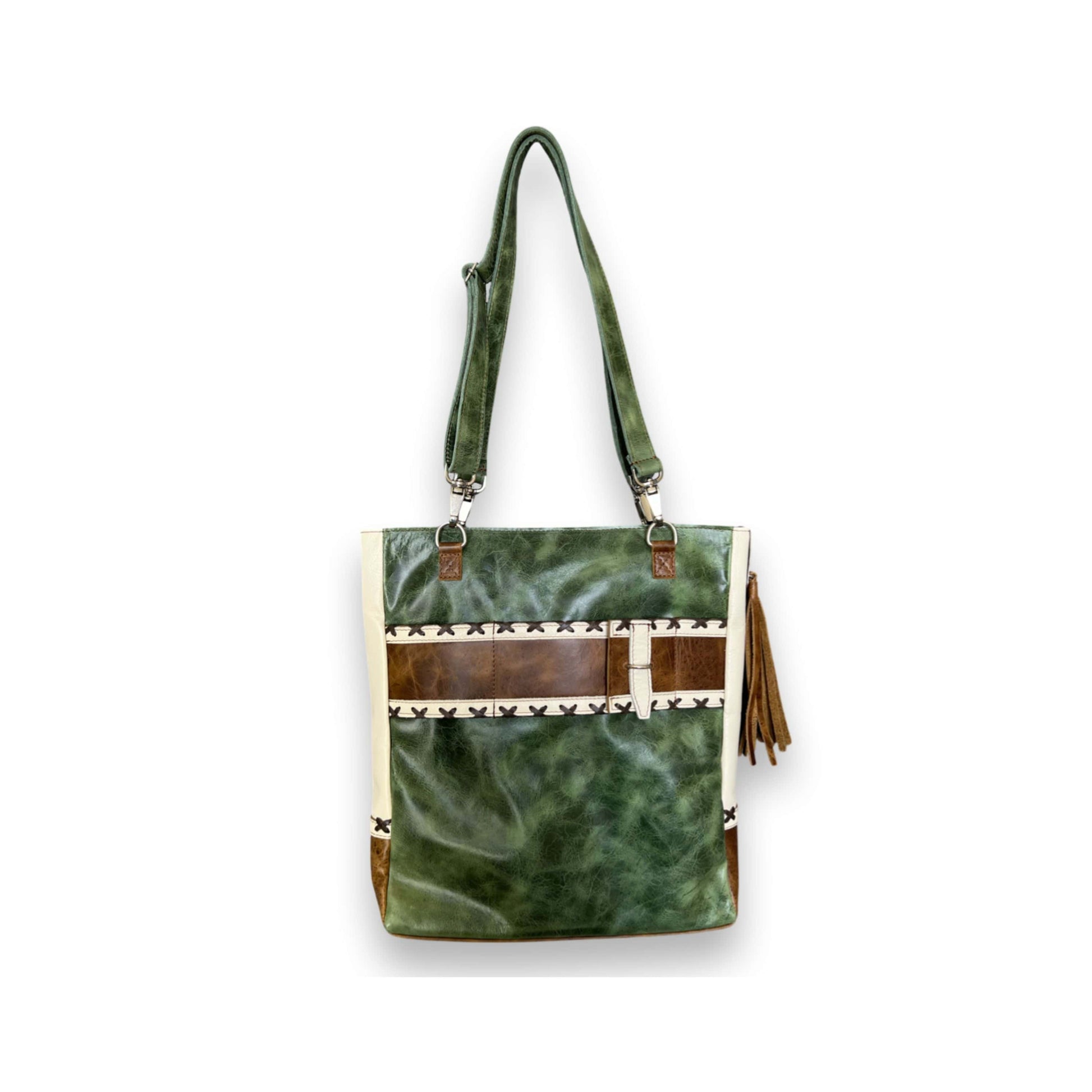The Lou is perfect for those on the go ladies. The beautiful bag is a 2-1 that transforms from a handbag to a backpack. This handbag is made with elegant olive green leather and includes tan, ivory, and brown accents.