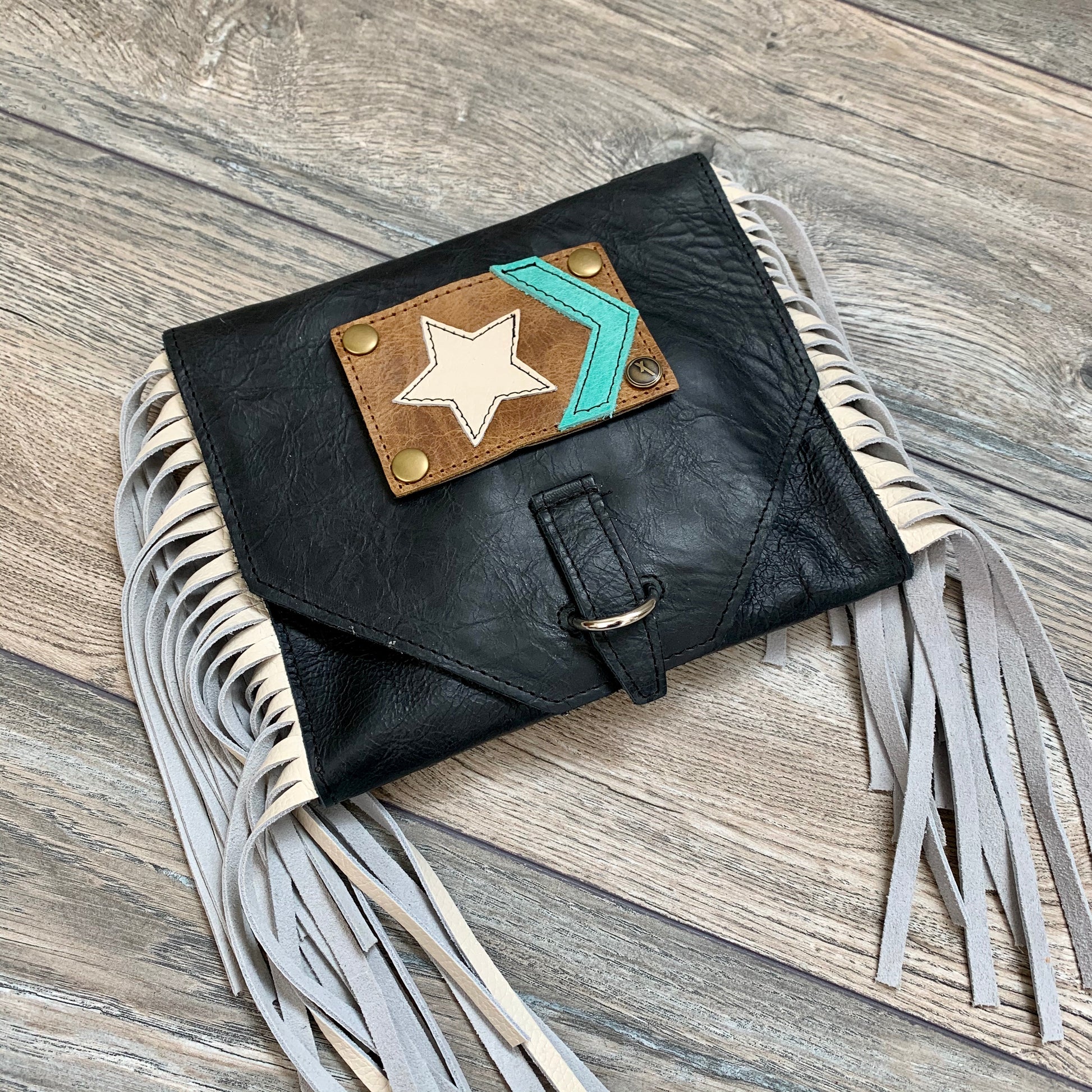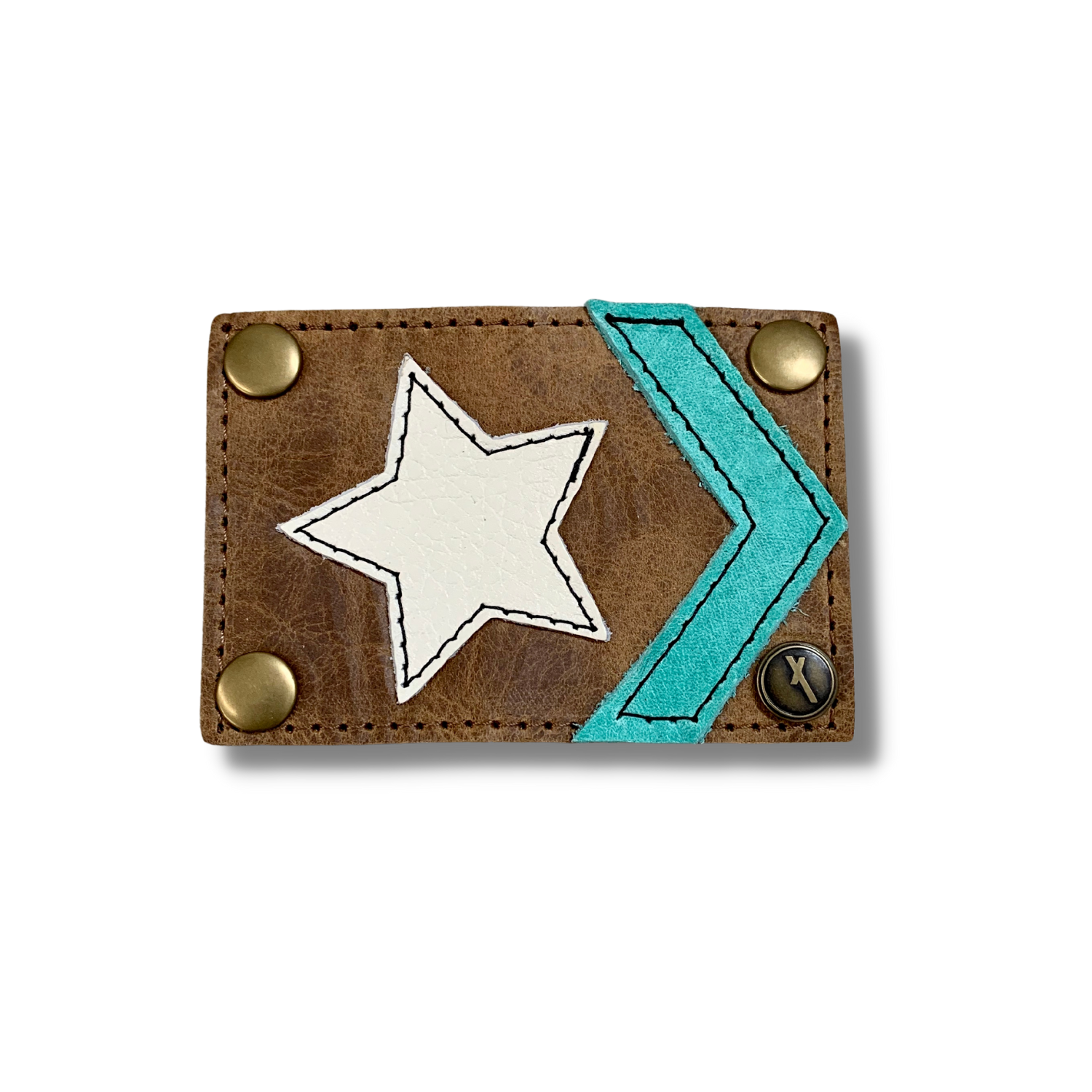 Be a star with this fun patch! Tan leather with pops of ivory and minty turquoise is finished with contrast stitching. Simple yet bold, this patch will fall into your everyday rotation!