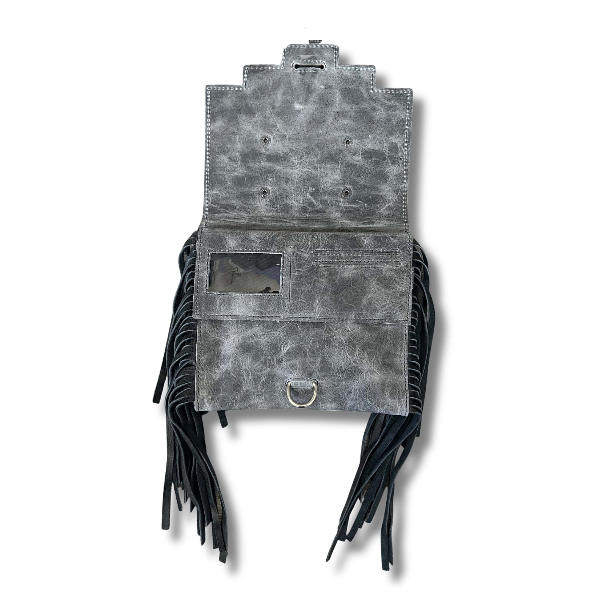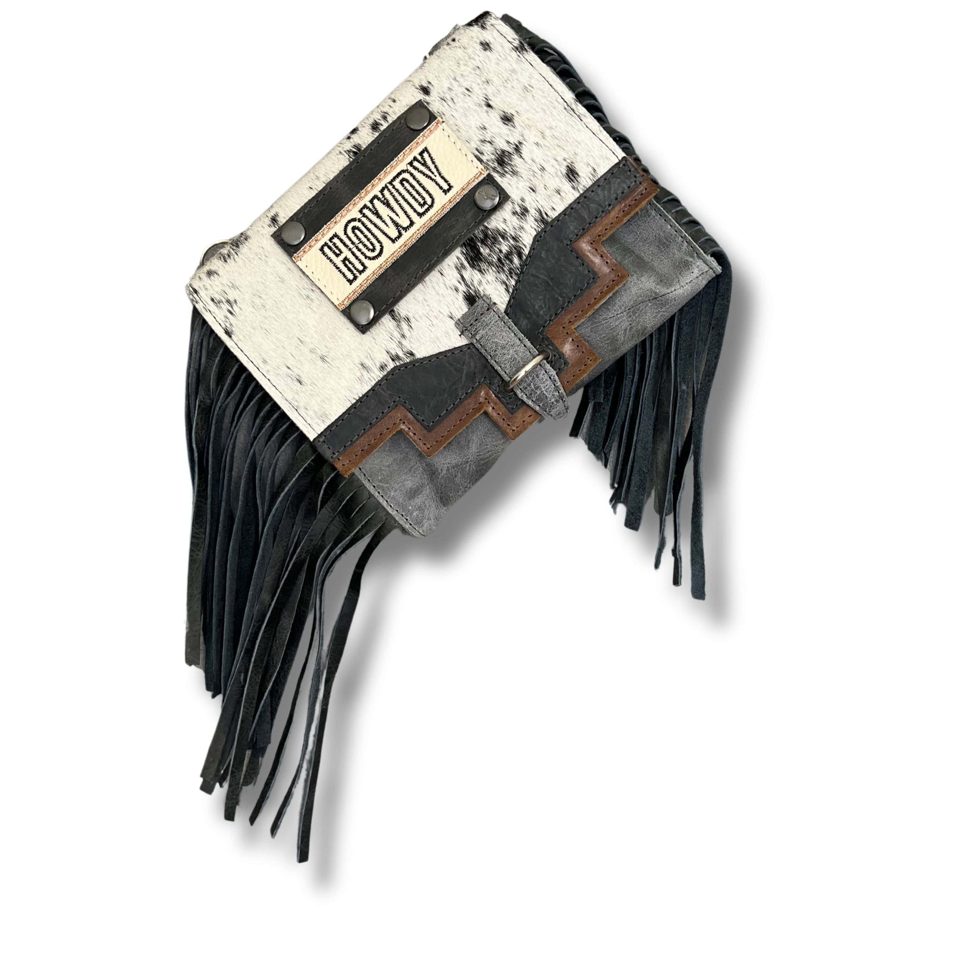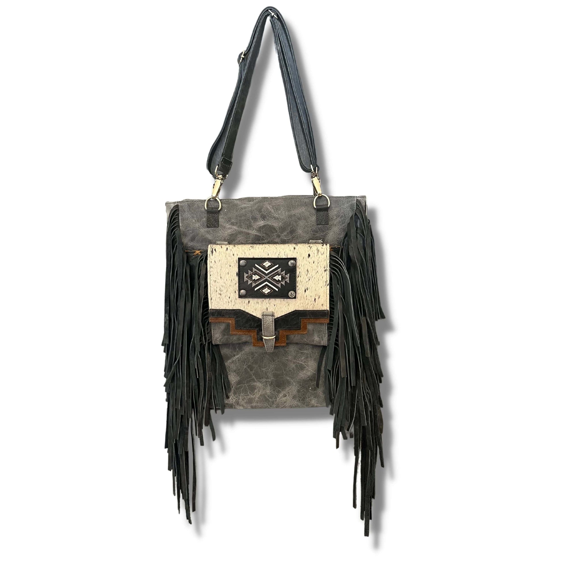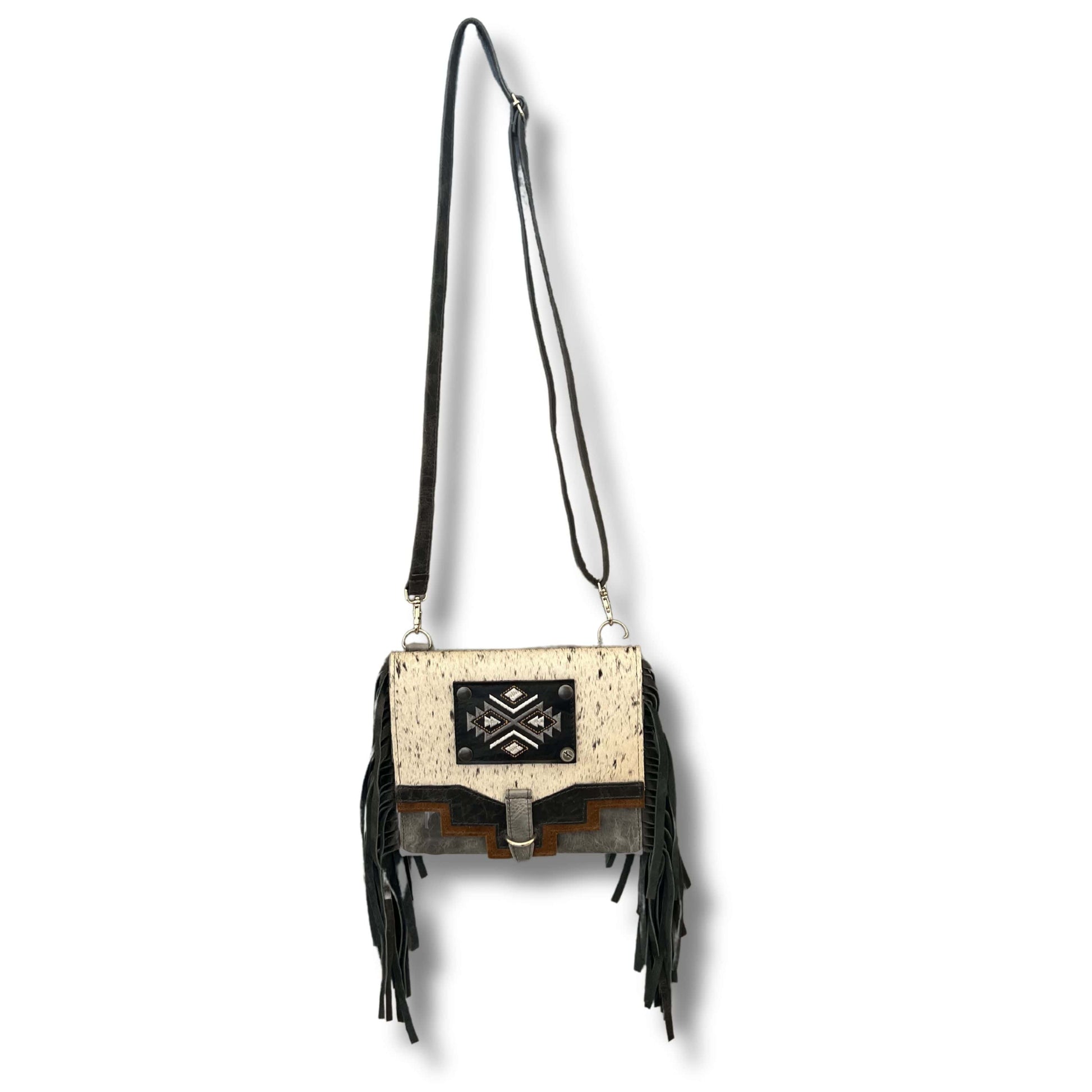 Made to hold just a little more than our other minis this Stone Pouch even comes with a built in wallet. The different shades of gray on this pouch accent the beautiful aztec design. Wear as a crossbody or attached to any one of our handbags!