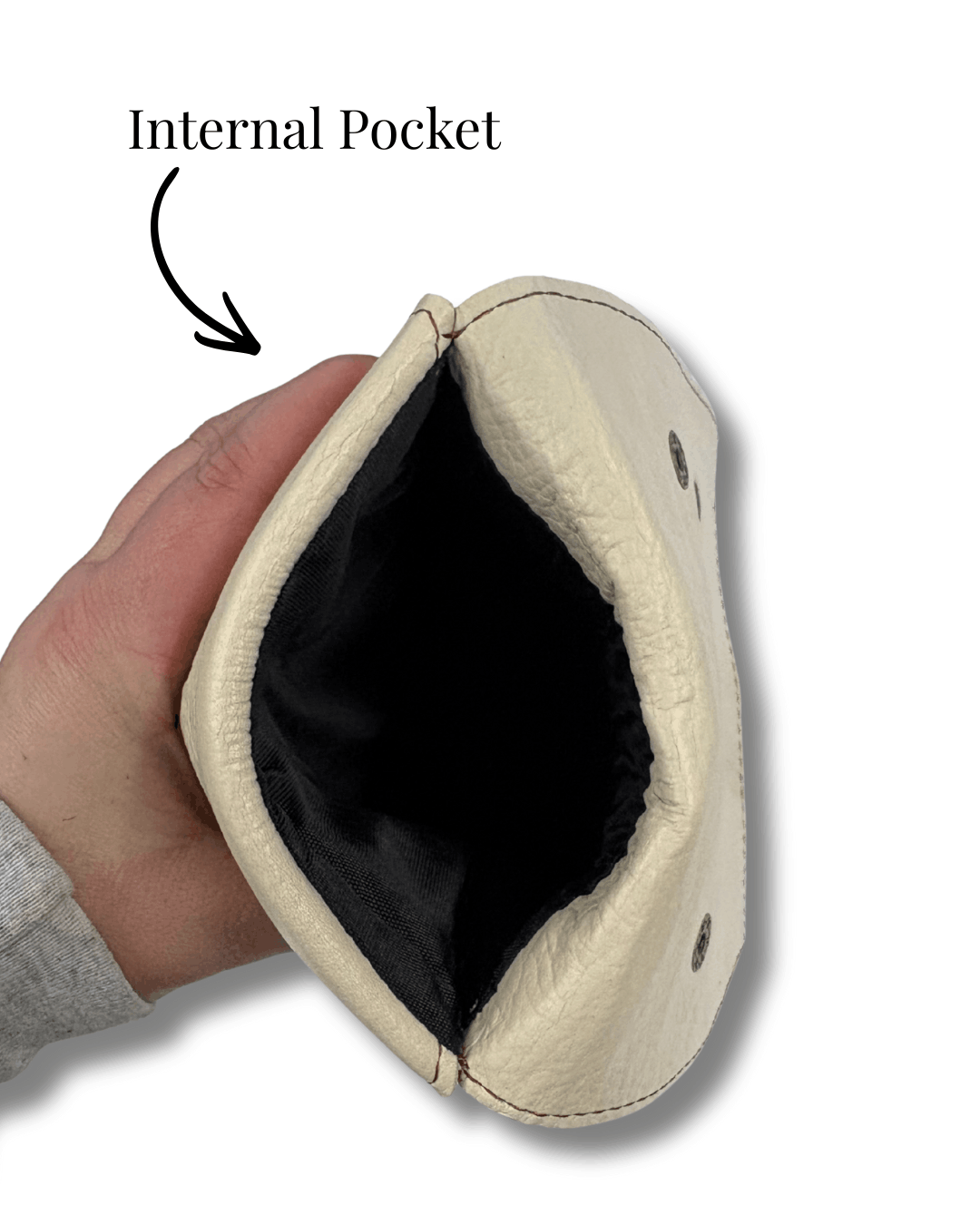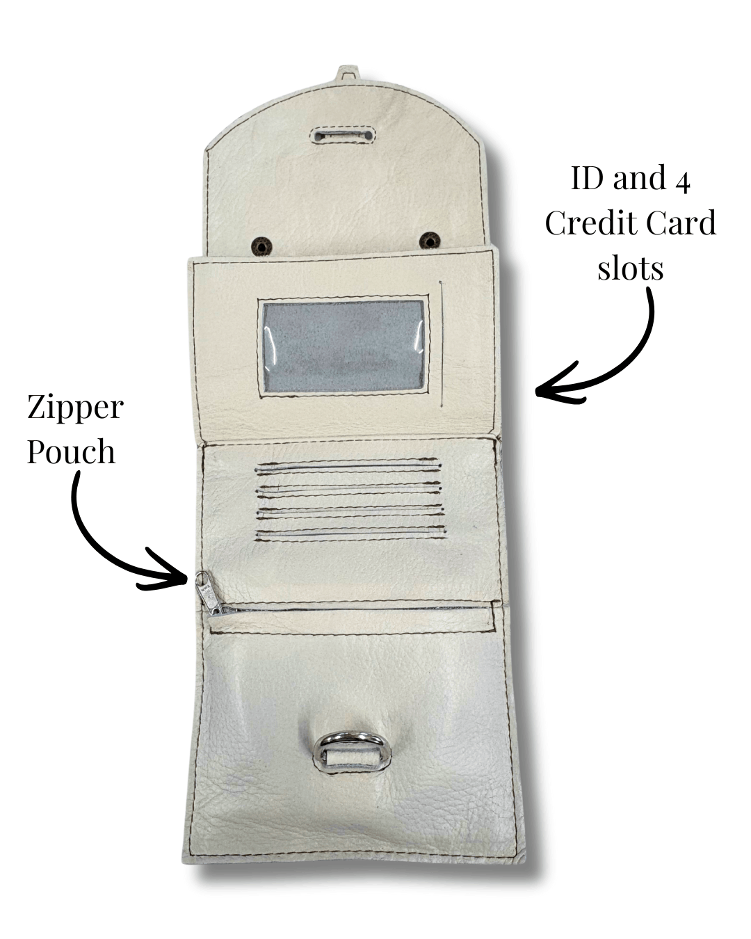 - Interior has place for ID, cards, cash, zipper pocket, and deep full length pocket