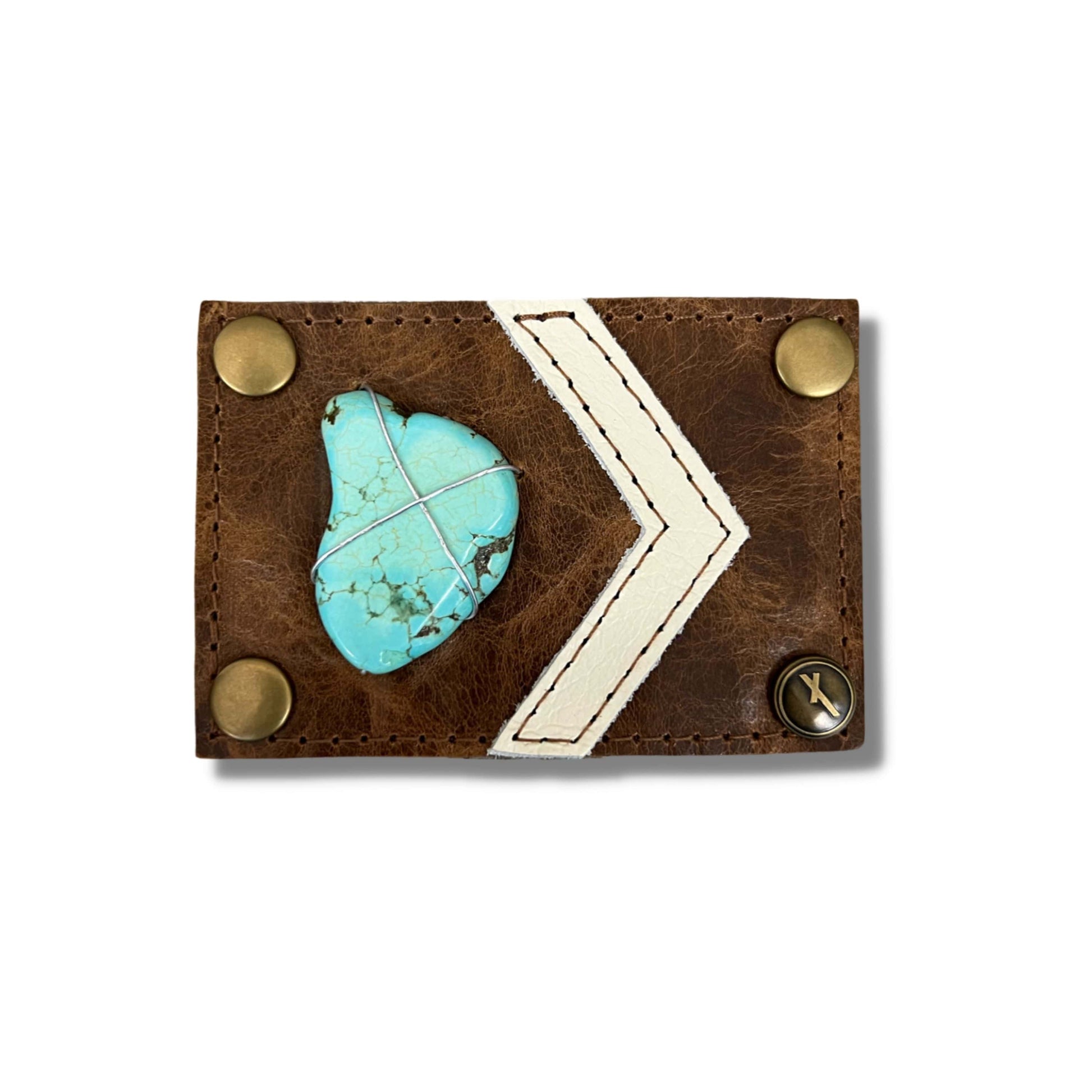 The turquoise chunk arrow patch is a twist on our original turquoise chunk patch. These patches are super individualized because no two stones are the same!