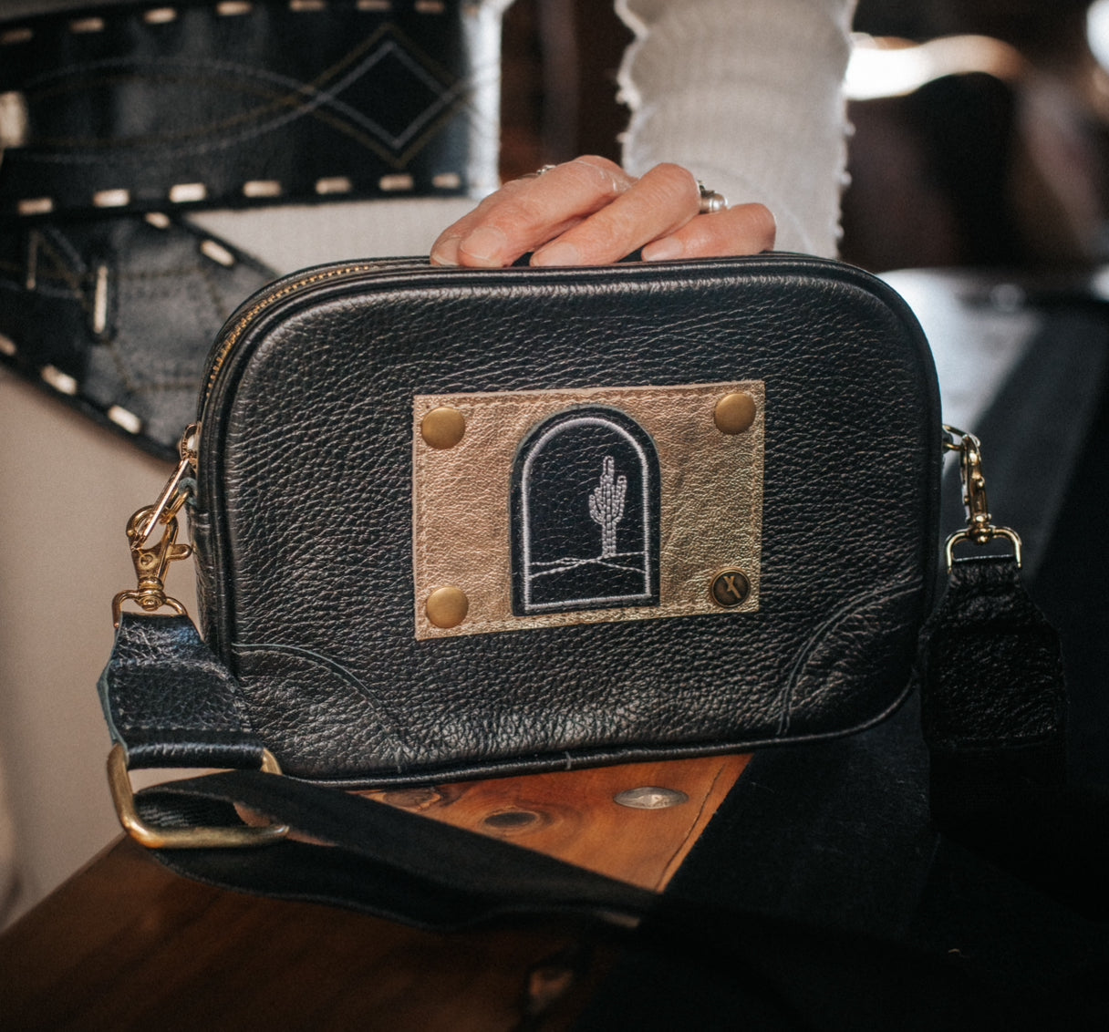 The Urban Fanny is your go-to for effortless style. All-black leather with gold hardware and a sleek gold zipper, it's the perfect size to throw on and go. Plus, the patch easily attaches to the front for that extra touch of flair!