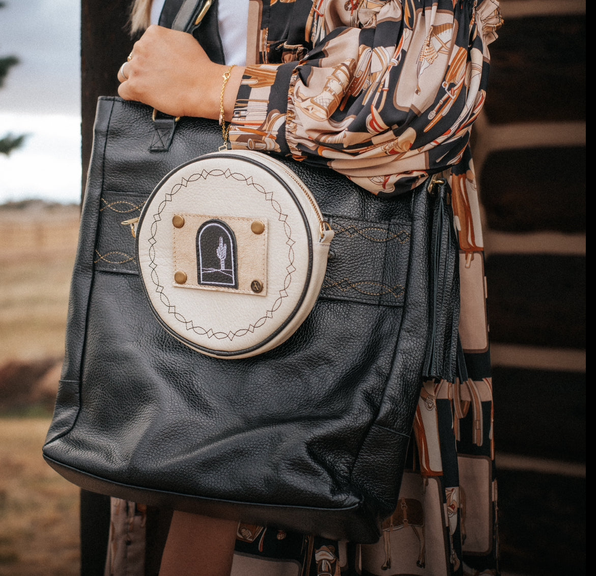 - Any crossbody mini or pouch can attach to the front of the bag. Sold separately.